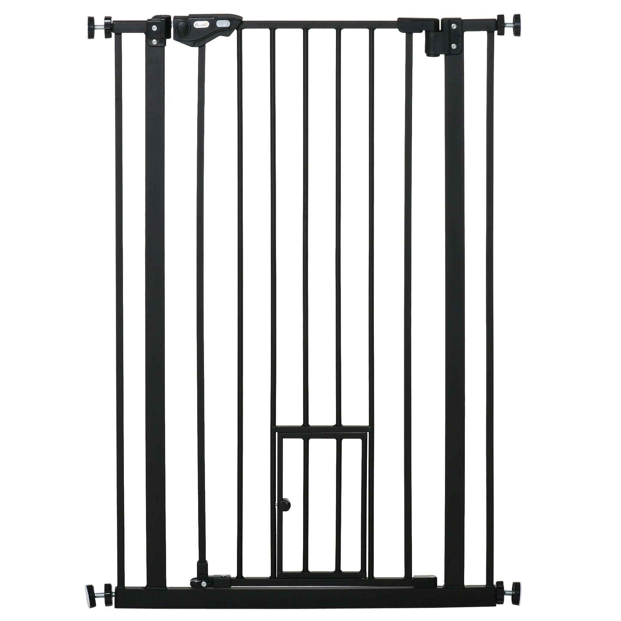 Cette barrière de protection est idéale pour portes et escalier d'une largeur comprise entre 74 et 80 cm. Elle vous permettra d'offrir un maximum de sécurité pour votre animal. Cette barrière de protection en acier se fixe par simple pression entre les cloisons ou encadrement de porte. Aucun perçage ni vissage requis. À noter que cette barrière de sécurité est équipée de 2 portes verrouillables (une grande, une petite) adaptées pour chien et chat.