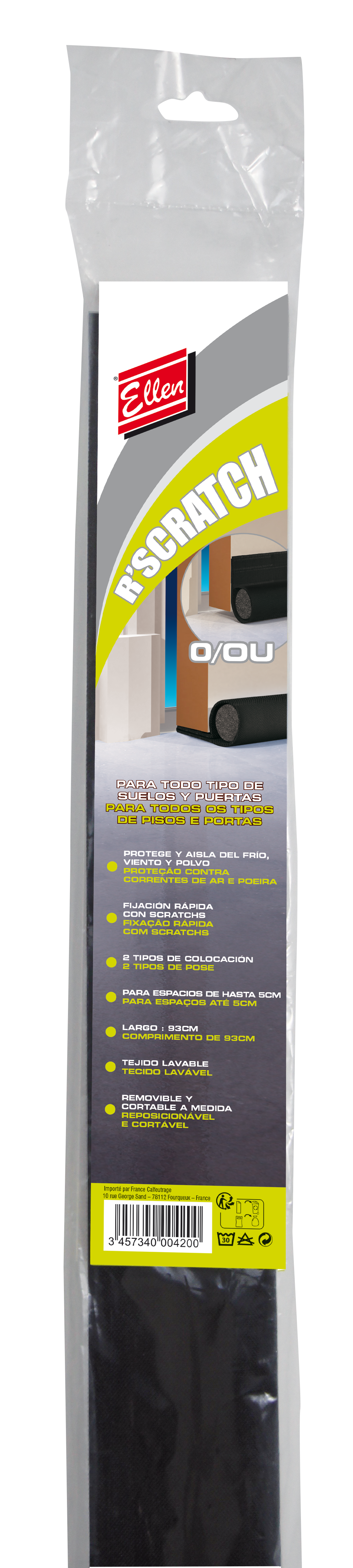 Ce bas de porte textile de 95cm protège du froid, des courants d'air et de la poussière. Il permet de calfeutrer un espace de 5cm. Facile à poser.