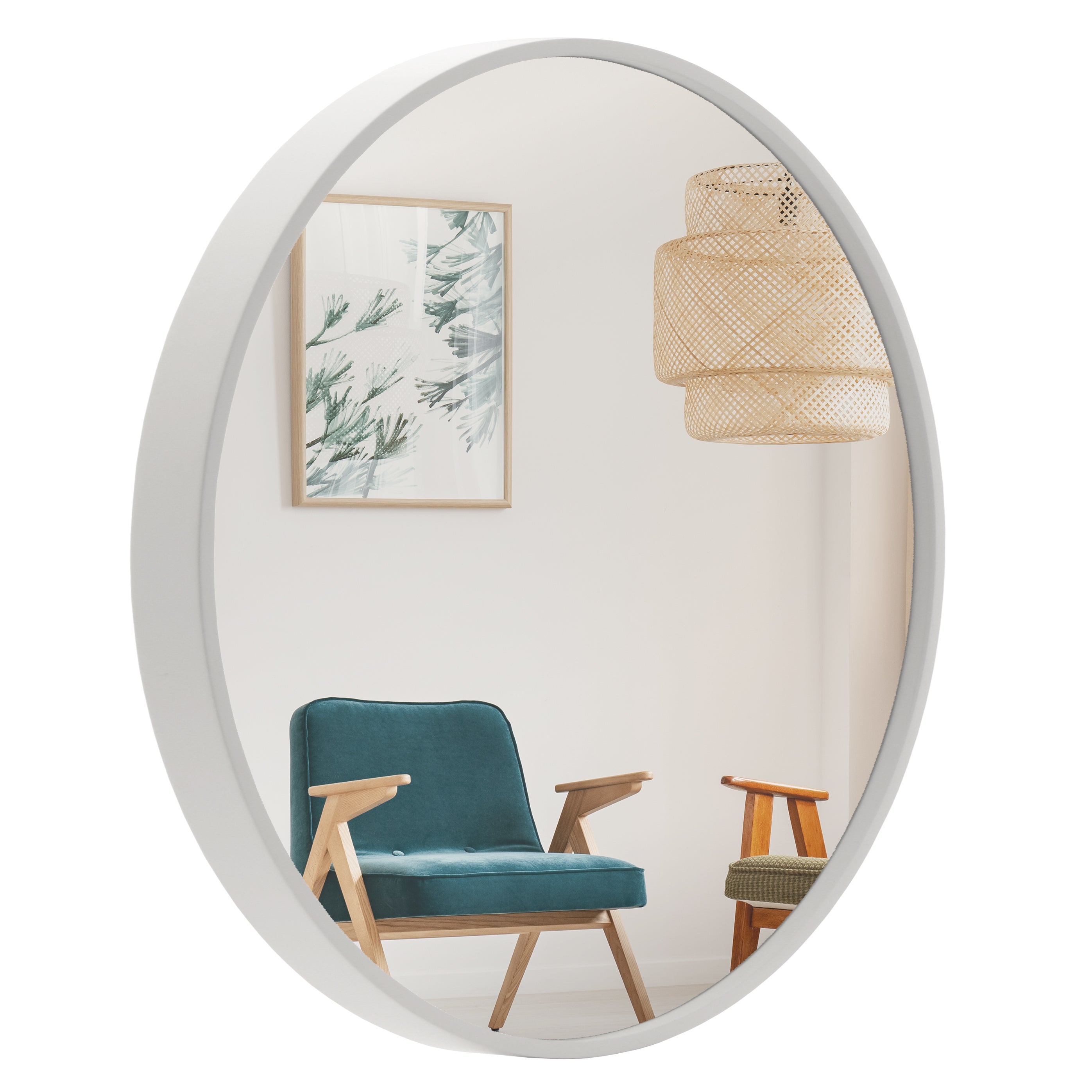 BD ART Miroir Rond Moderne, Mural, Diamètre de 60cm, Bois, Couleur Blanche