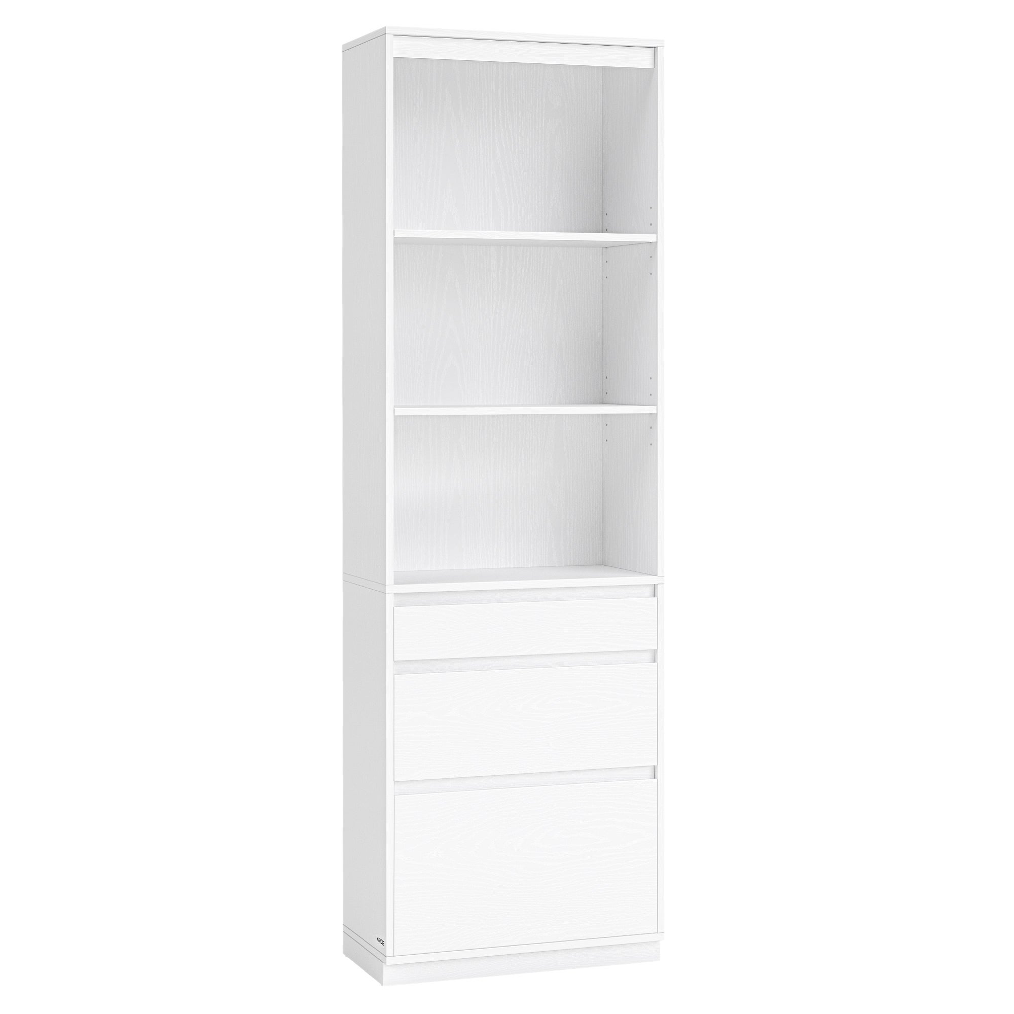 Bibliothèque, 3 Tiroirs de Tailles Différentes, Étagères Réglables, Hauteur 180 cm, pour Salon, Chambre, Bureau, Moderne, Gain de Place, Blanc Neige
