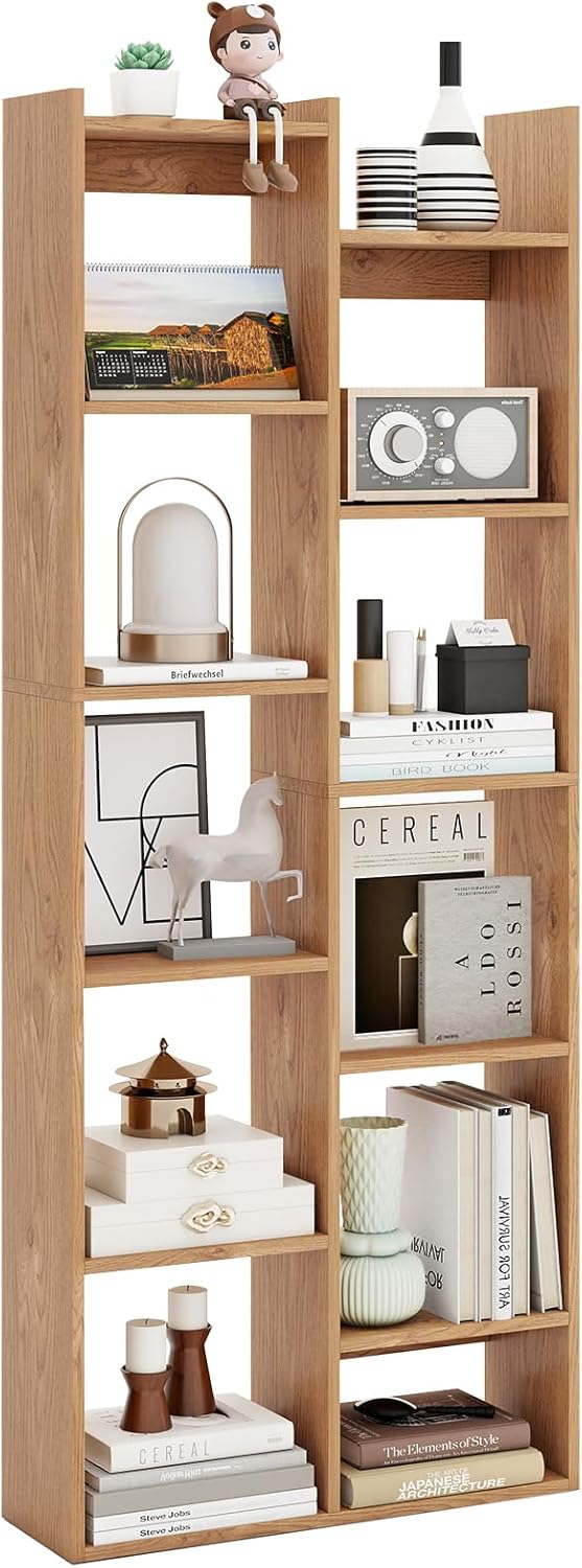Bibliothèque Étagère à 6 Niveaux, Bibliothèque avec 10 Cubes Ouverts, 2 Étagères Supérieures, pour Salon, Bureau,65 x 20 x 162 cm (Naturel)