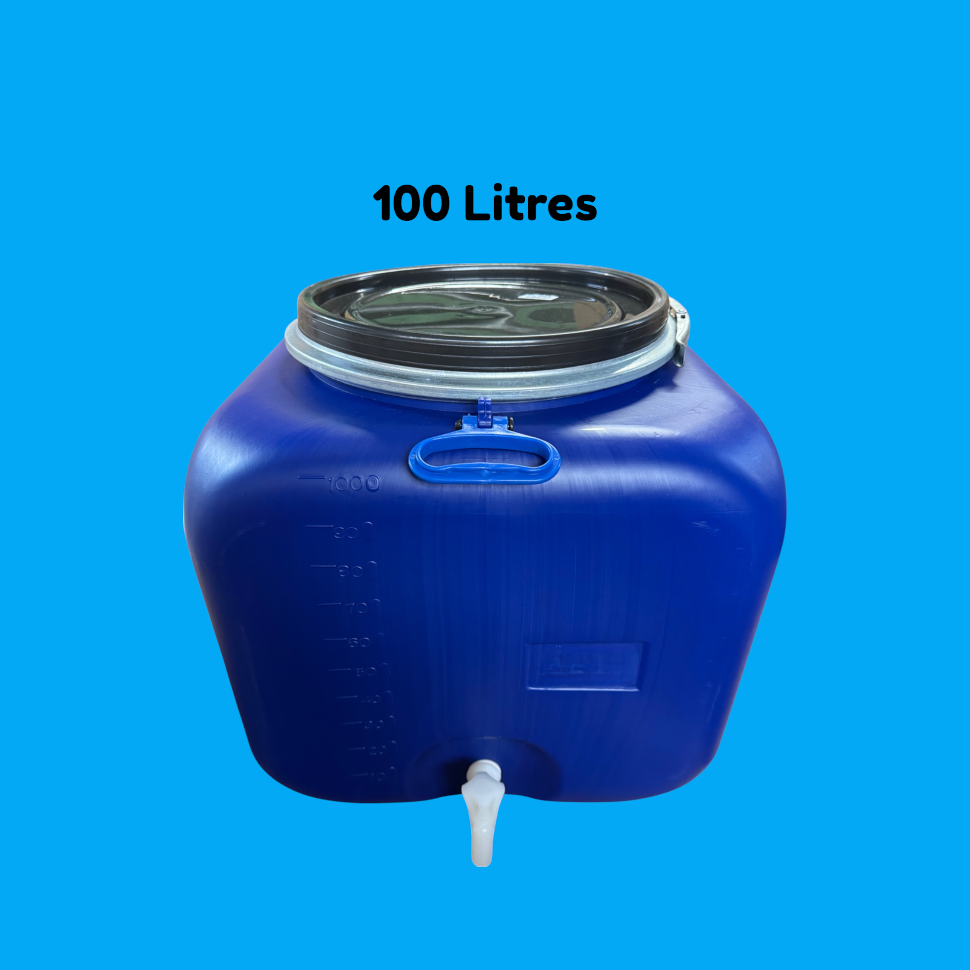 Bidon Plastique 100 Litres Carré avec Robinet et Couvercle Ø34 cm – Réservoir Alimentaire Hermétique