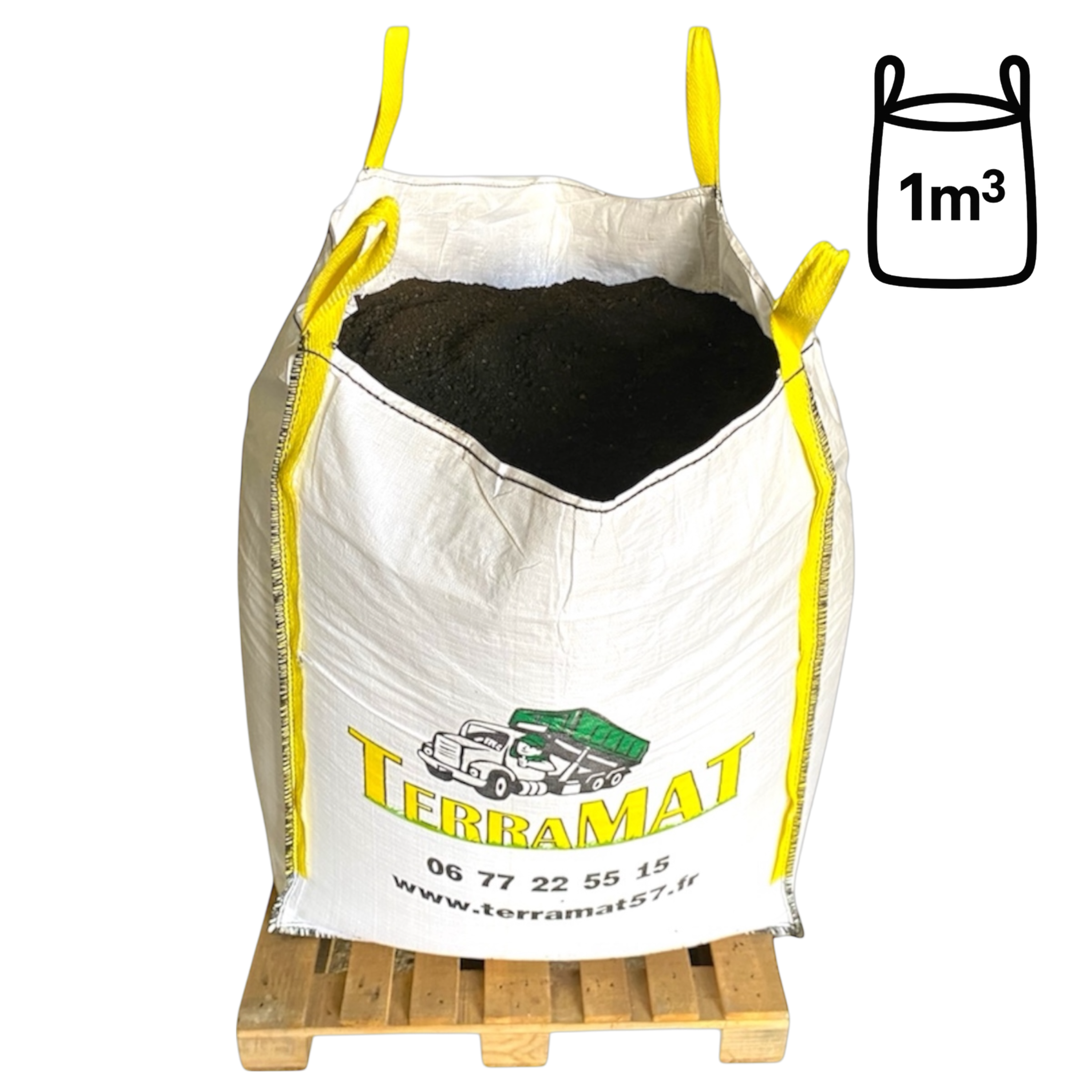 Bigbag de 1 m³ sur palette perdue, terre livrée sèche, propre et facile à stocker et à manipuler.