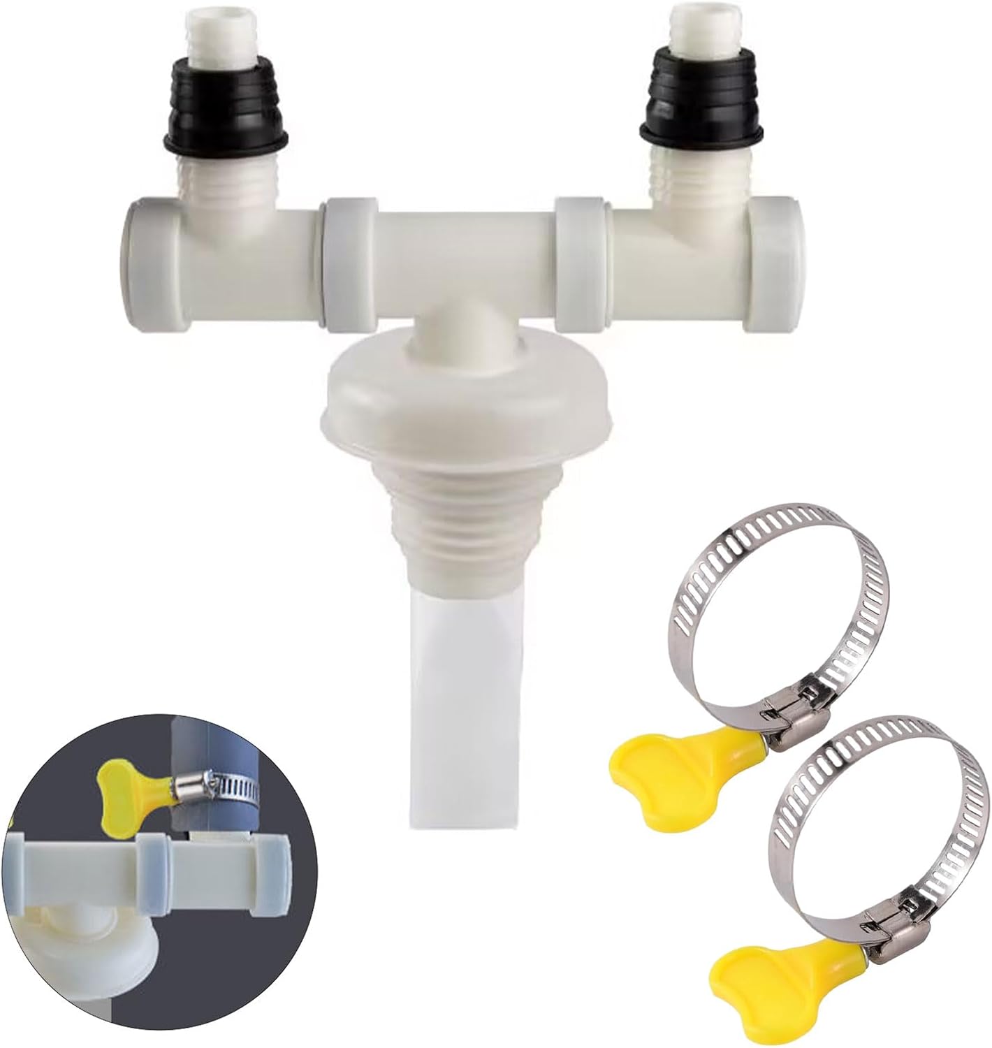 Blanc Double Evacuation Machine a Laver,Clapet Anti Retour Machine a laver,Double Raccord pour Sèche-Linge et Machine à Laver,Raccord pour Machine à