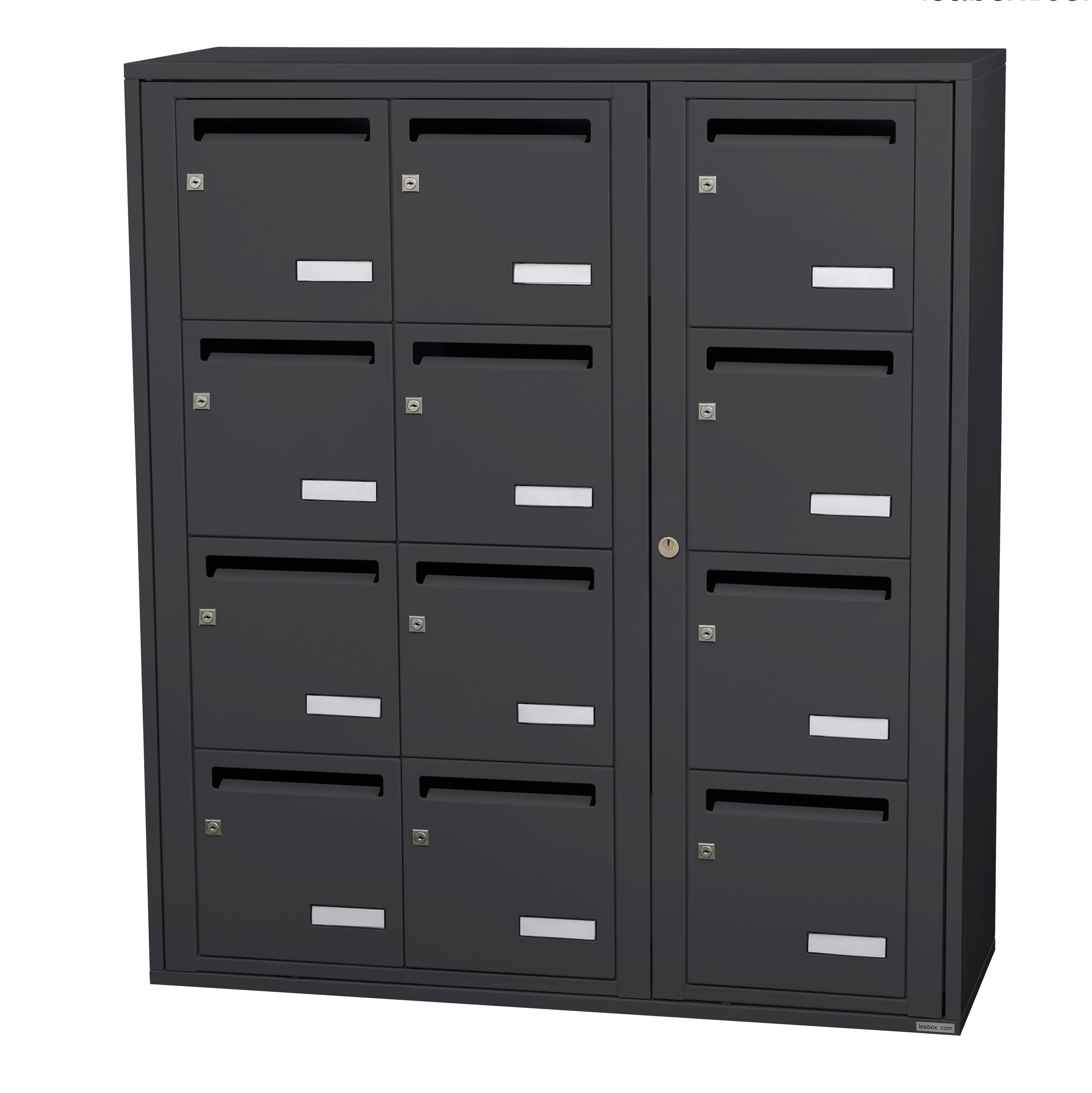 Bloc collectif leabox.com, 3x4, grade 3, simple face, Intérieur, fixation murale, Gris anthracite RAL 7016 finition brillante