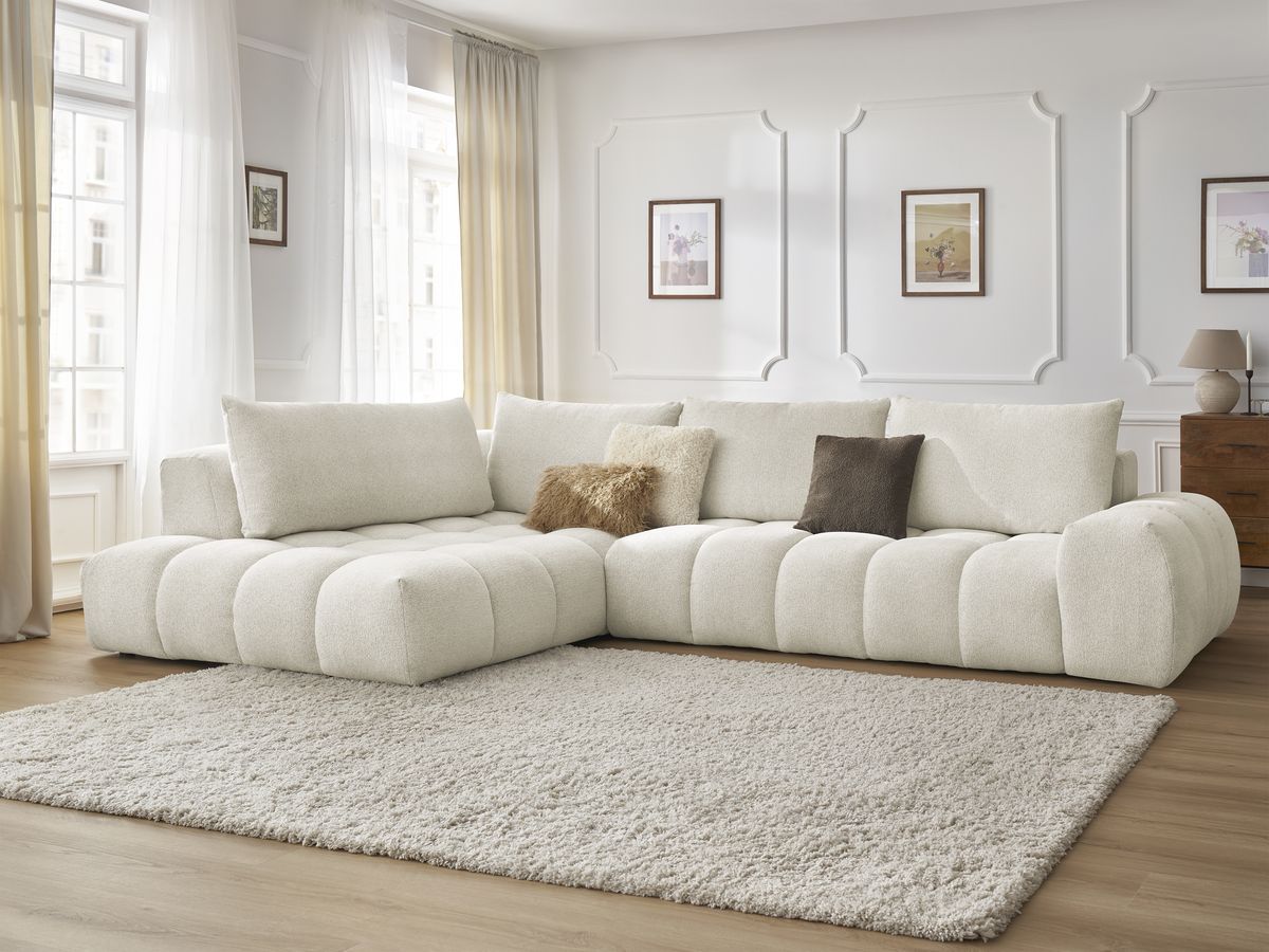 BOBOCHIC Canapé d'angle fixe EVEREST tissu chiné Blanc Angle gauche