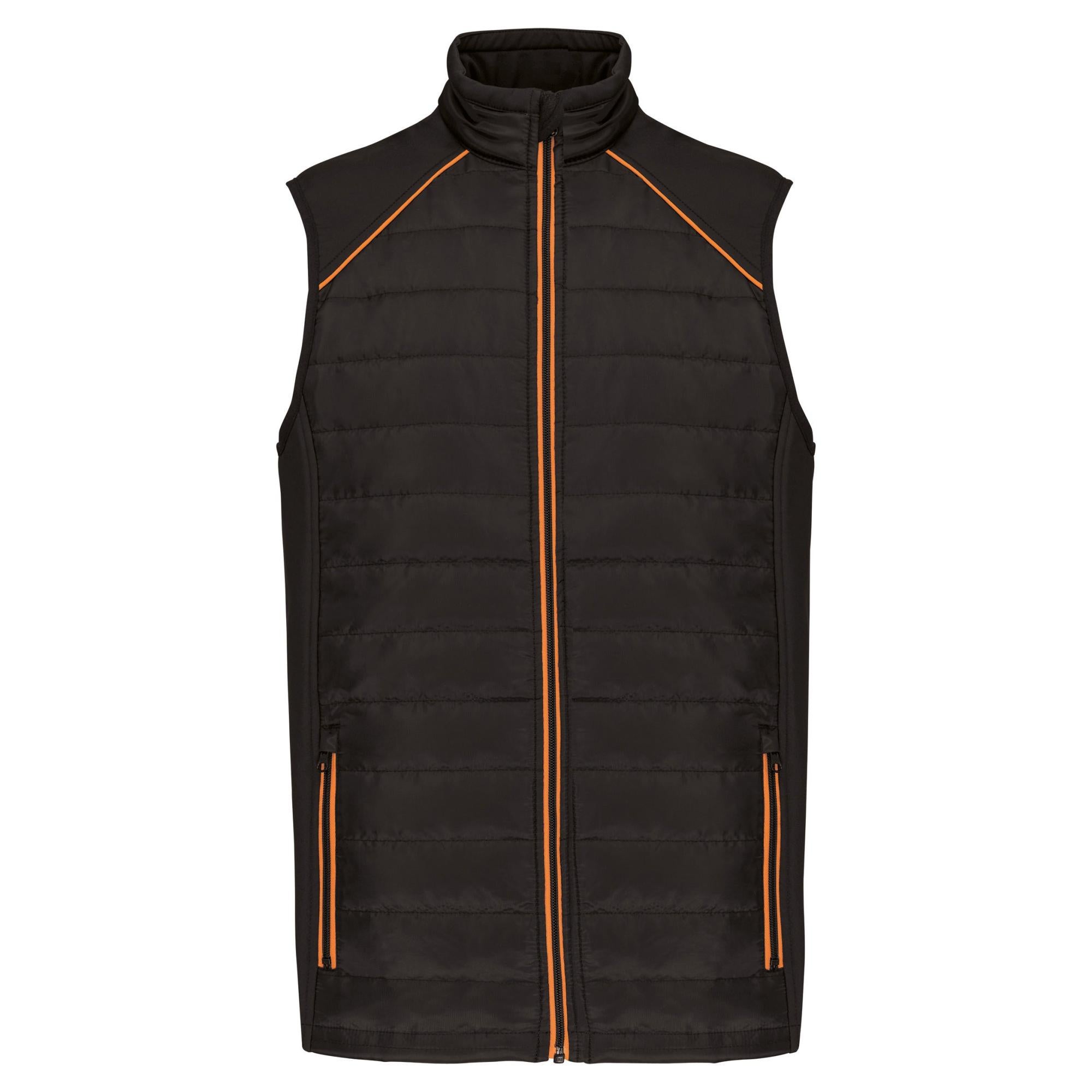 100 % polyester. Softshell 2 couches, tissu extensible dans les 4 sens pour plus d'aisance avec couche intérieure polaire pour plus de chaleur sur les côtés et les épaules. Devant et dos : 100 % polyester 75 g taffetas 230T avec enduction. Tissu traité déperlant. 2 poches avant zippées. 1 étiquette nom fixée intérieur gauche. Passepoil contrasté aux emmanchures sur la couture raglan et intérieur du col. Fermeture zippée avant et poches contrastées. Zip invisible de personnalisation au bas de vêtement. Ideal pour une utilisation quotidienne.