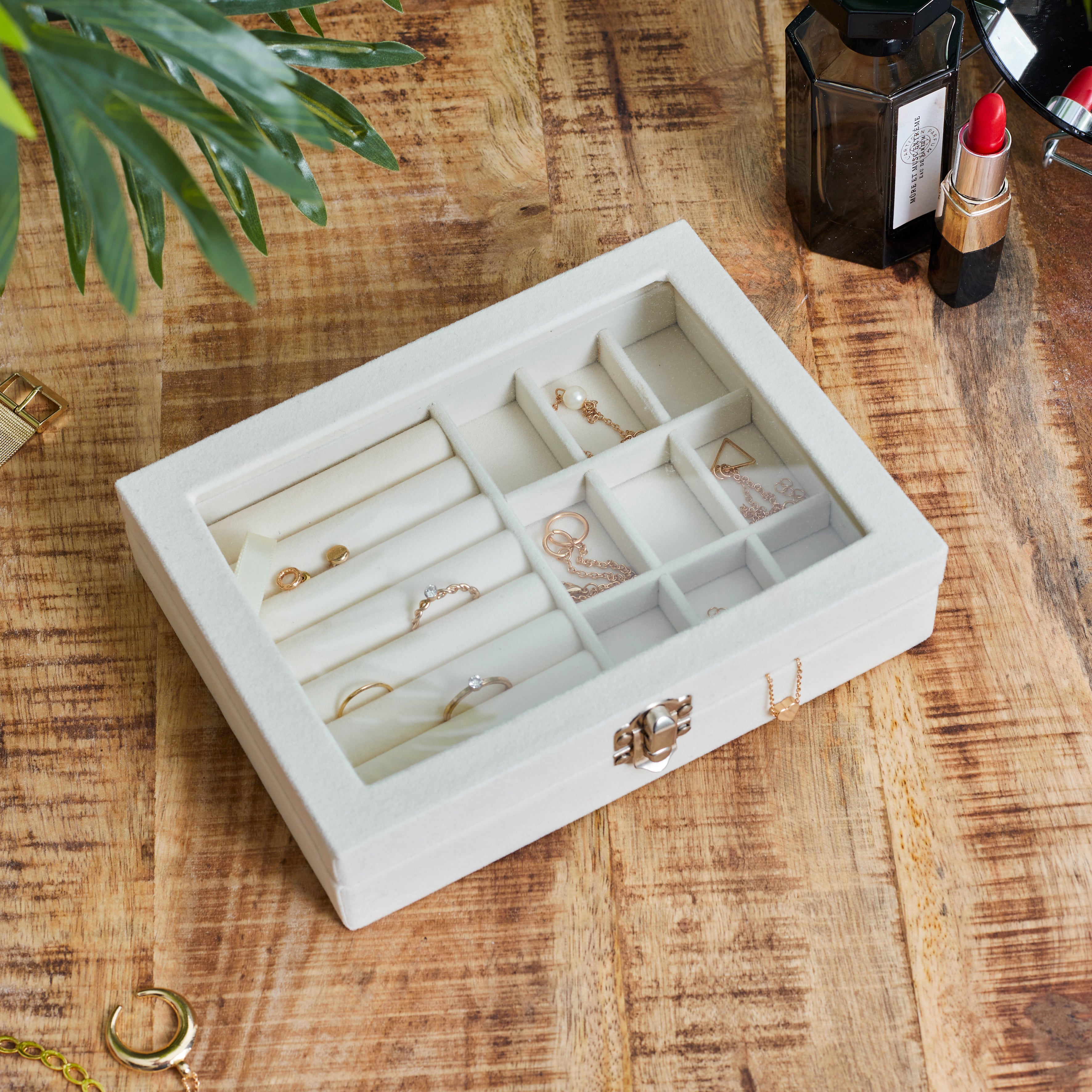 - Couvercle transparent pour une visibilité optimale des bijoux.