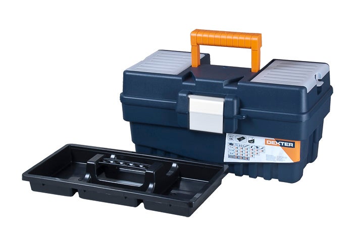 Boîte à outils Dexter 16" pour le rangement de vos outils, accessoires ou consommables. Elle est livrée avec un plateau pour encore plus de stockage. Elle dispose d'une attache en aluminium, une poignée rétractable, 2 organiseurs dans le couvercle pour le stockage et accès rapide aux consommables. Design moderne et couleurs originales.