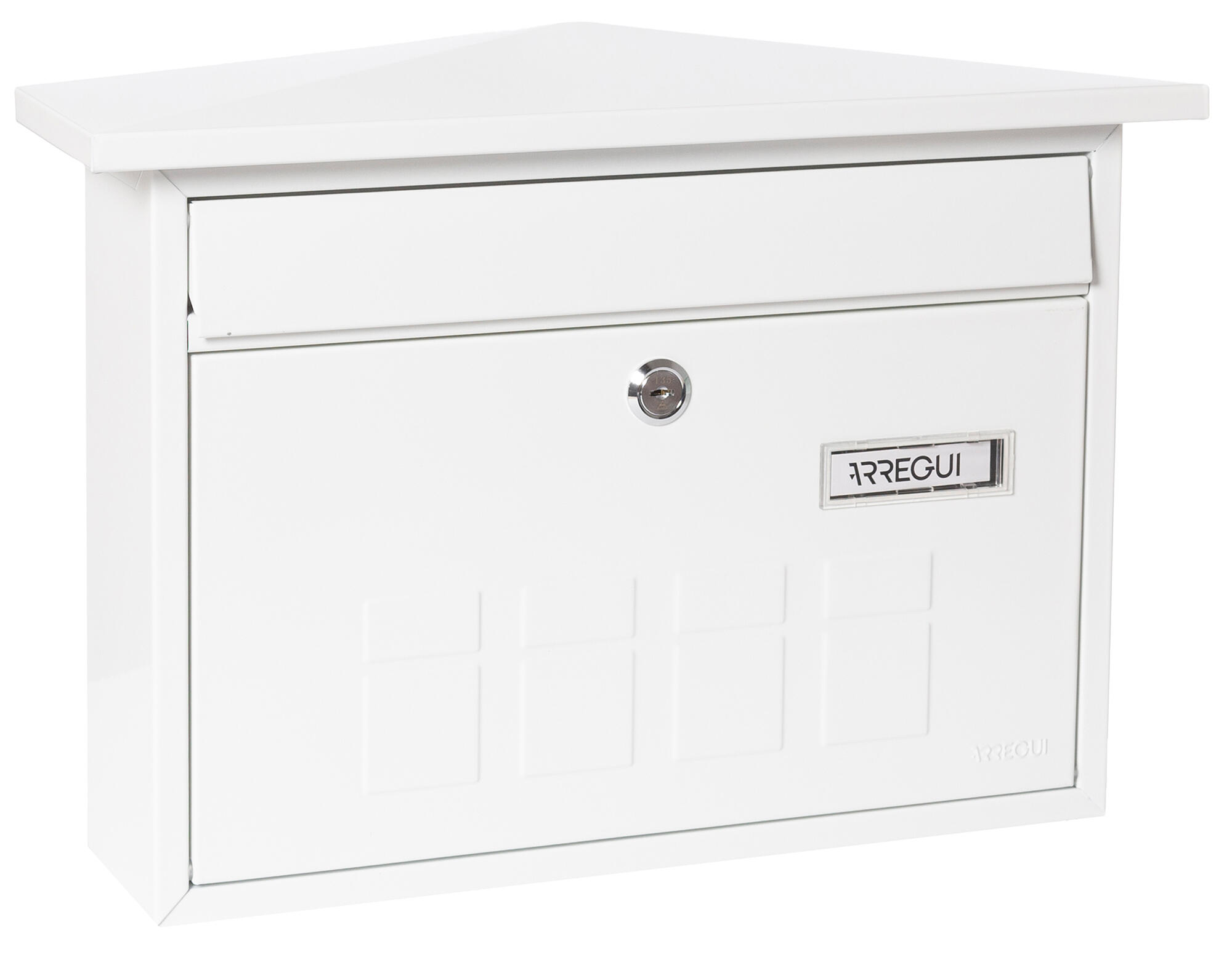 Modèle pour usage extérieur, fabriqué en acier et finition couleur blanche. Dimensions : 275 x 410 x 100 mm.