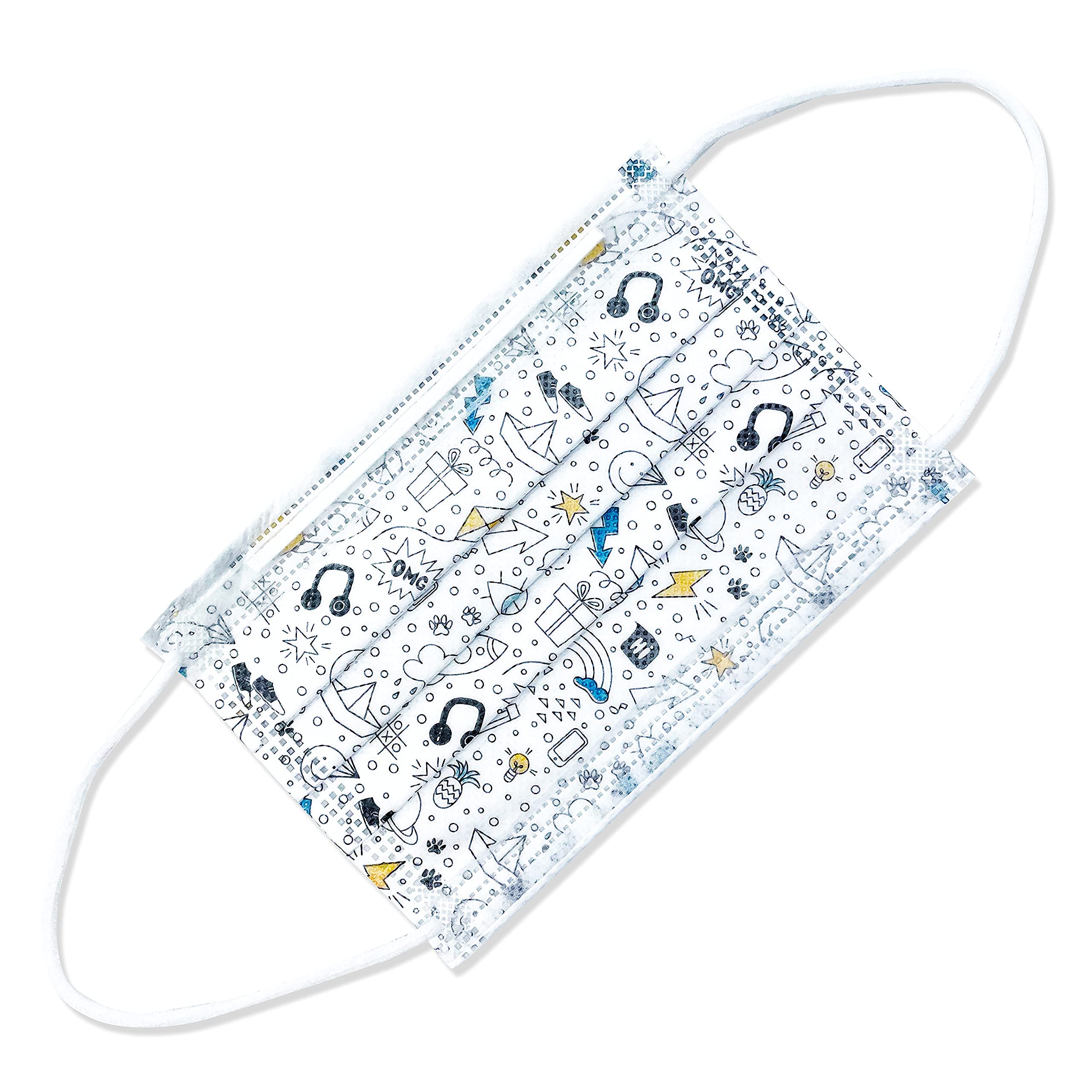 Boîte de 50 Masques Enfant Anti-Poussière avec Motif – Masques de Protection 3 Plis Haute Filtration – 3 Couches en Polypropylène