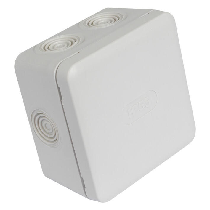 Cette boite de dérivation carrée grise faisant 8,5 cm de coté et une profondeur de 5cm IP55 est adaptée au câblage sous abri et à l'extérieur.