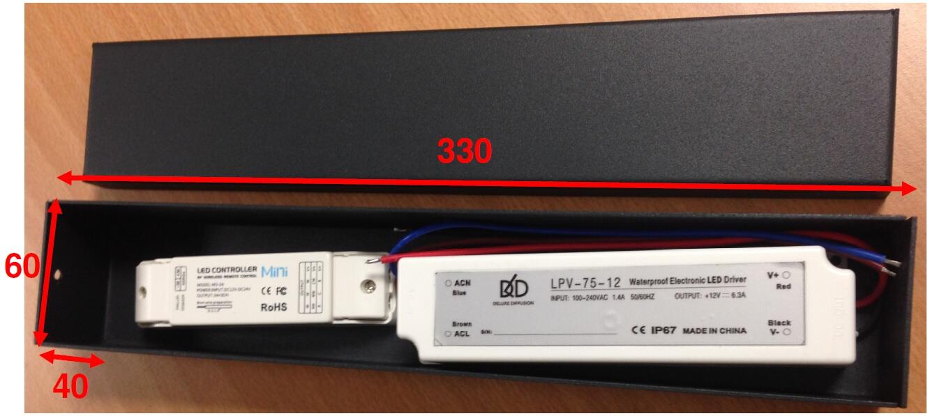 Boitier en acier laqué Epoxy coloris blanc - Permet de cacher l'alimentation électrique du store et du système LED (transformateur et récepteur radio)