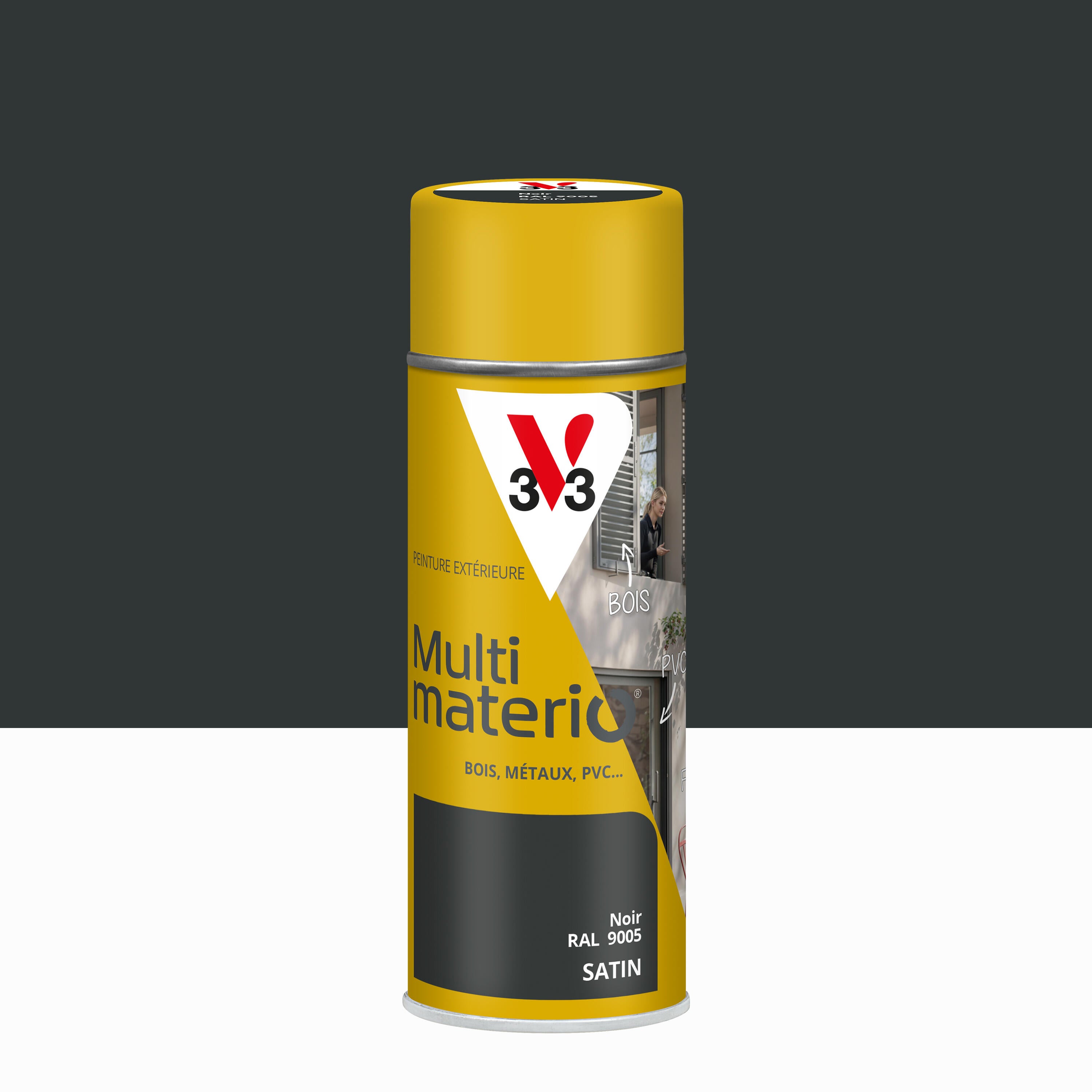 Bombe de peinture Multimatériaux V33 noir satiné 400 ml