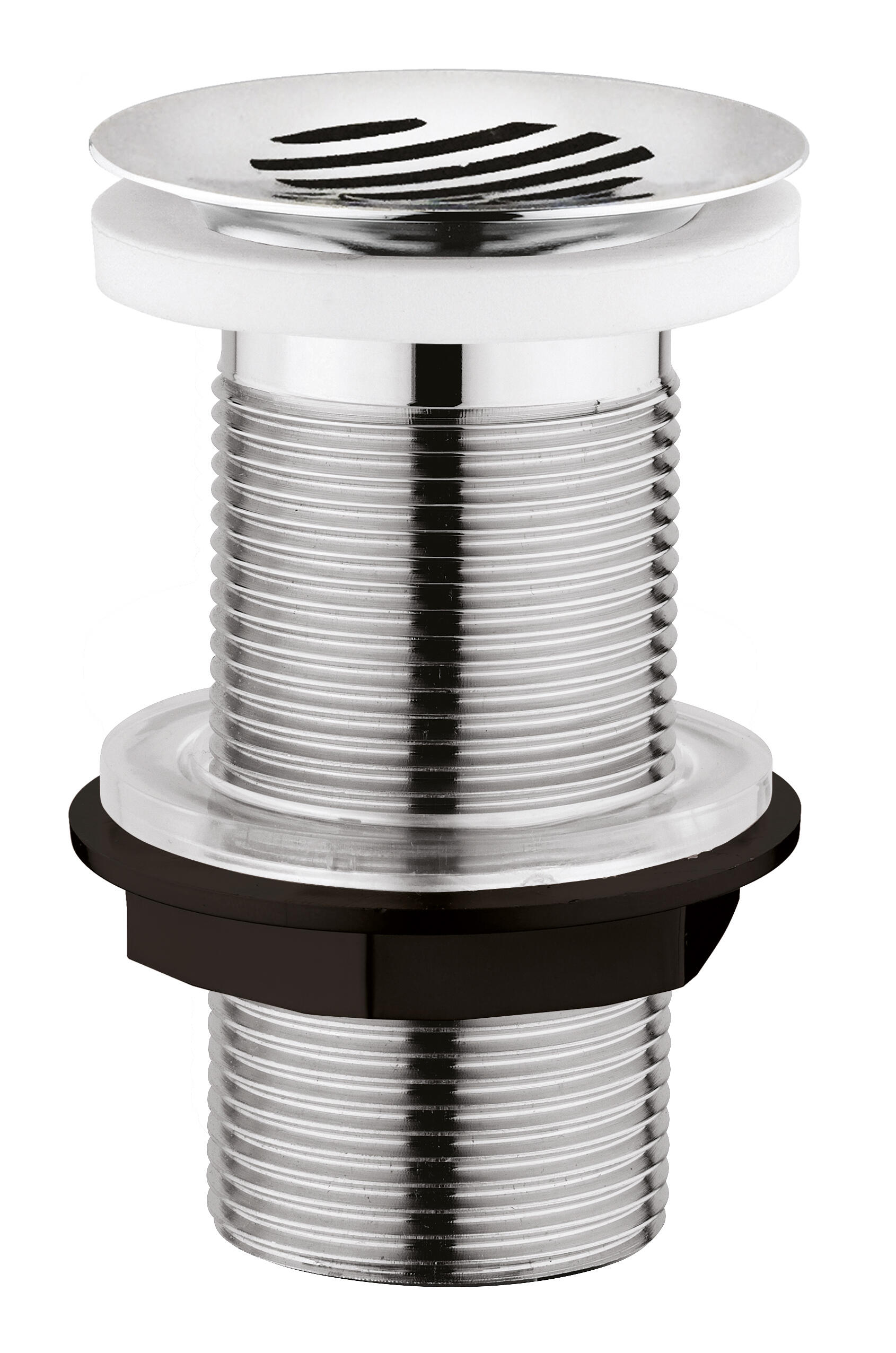 Bonde laiton avec grille pour vasque sans trop plein à écoulement libre (ouverture permanente) ; Serrage : mini 0 mm - maxi 69 mm ; Hauteur : 100 mm ; Cuvette métal : Ø 63 mm ; Sortie : 33x42 (1"1/4) ; Facile à nettoyer : le clapet se démonte très facilement afin d’accéder à l’intérieur de la bonde (faible profondeur, seulement 16 mm)