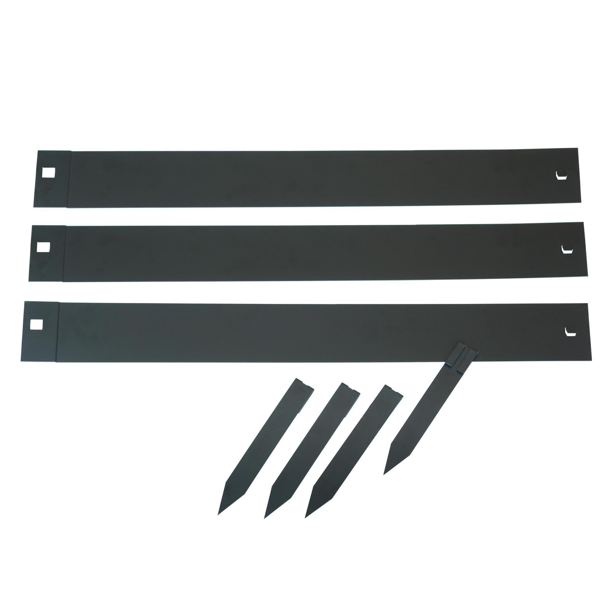 Bordure de jardin en acier galvanisé - raboutable, épaisseur 1,4 mm, noir mat, longueur totale utile 2,64 m, inclus 4 ancres (H25 x 3,5 cm) - latte H10,2 x 91,4 cm (3 x)