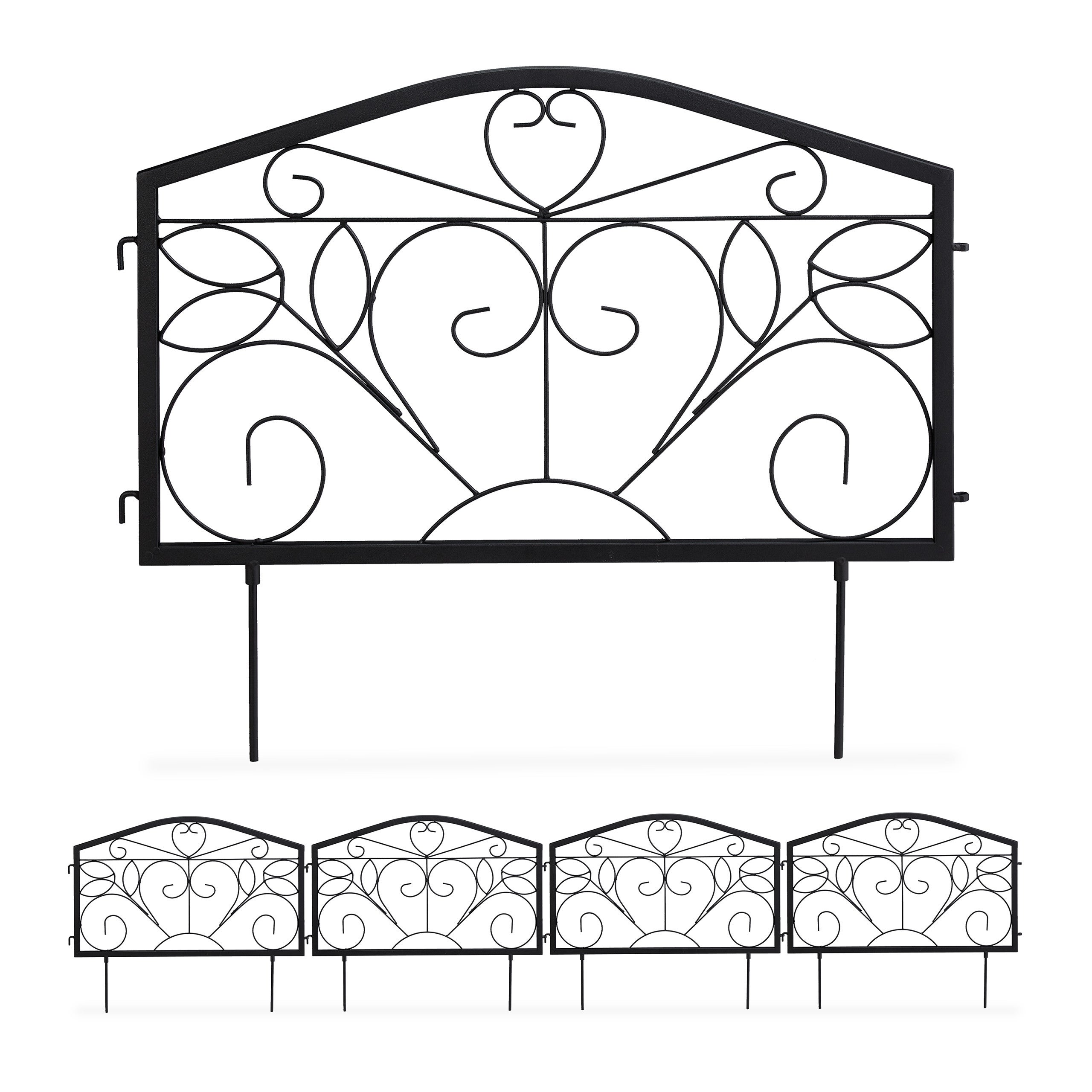 bordure potager, clôture jardin 4 éléments, fer, antique, ornements, H x L : 33 x 225 cm, noir, Relaxdays