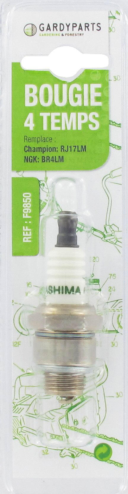 Bougie d'allumage remplace RJ17LM / LR17A, NGK: BR4LM pour moteur 4 temps