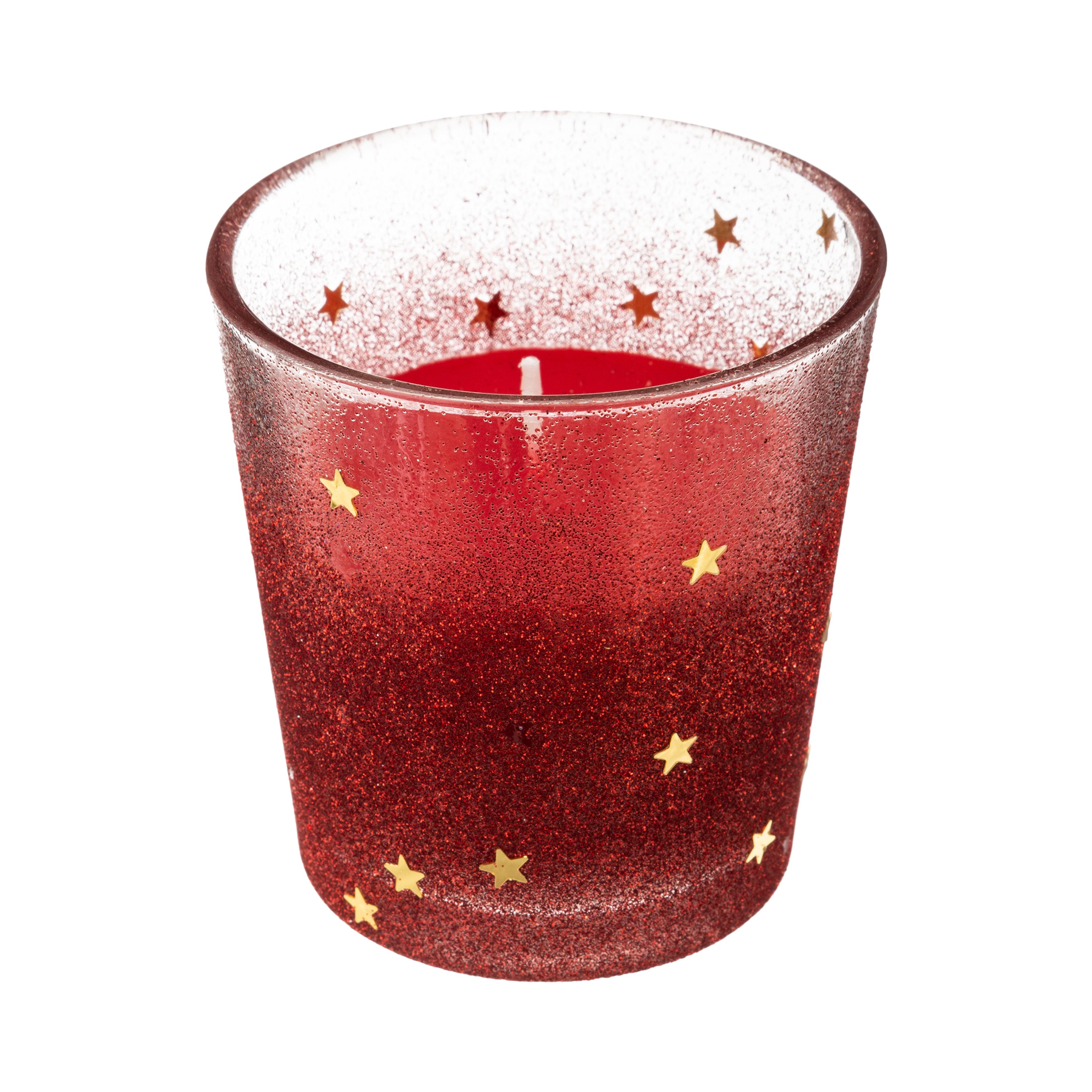 Bougie décorative en verre, paillettes rouge l.7.30 x H.8.00 cm