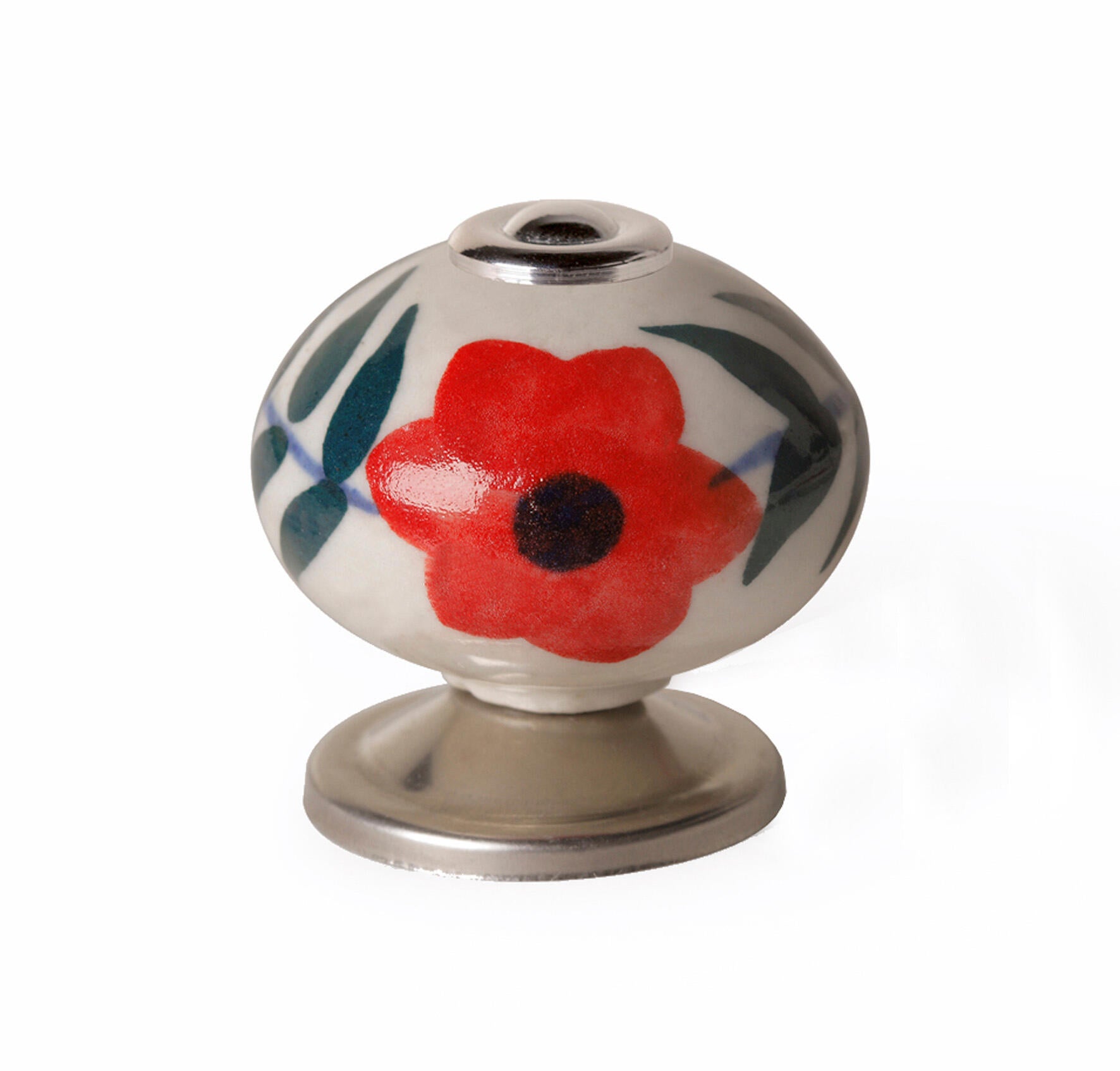 Bouton de meuble rond Flora, porcelaine multicouleur, Diam.40 mm