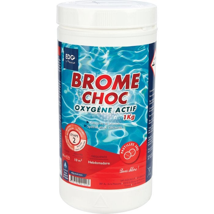 Informations produit: Brome choc pastille 20g Contenance: seau 1 kg Marque: Aqualux Avant toute utilisation, lisez l'étiquette et les informations concernant le produit.