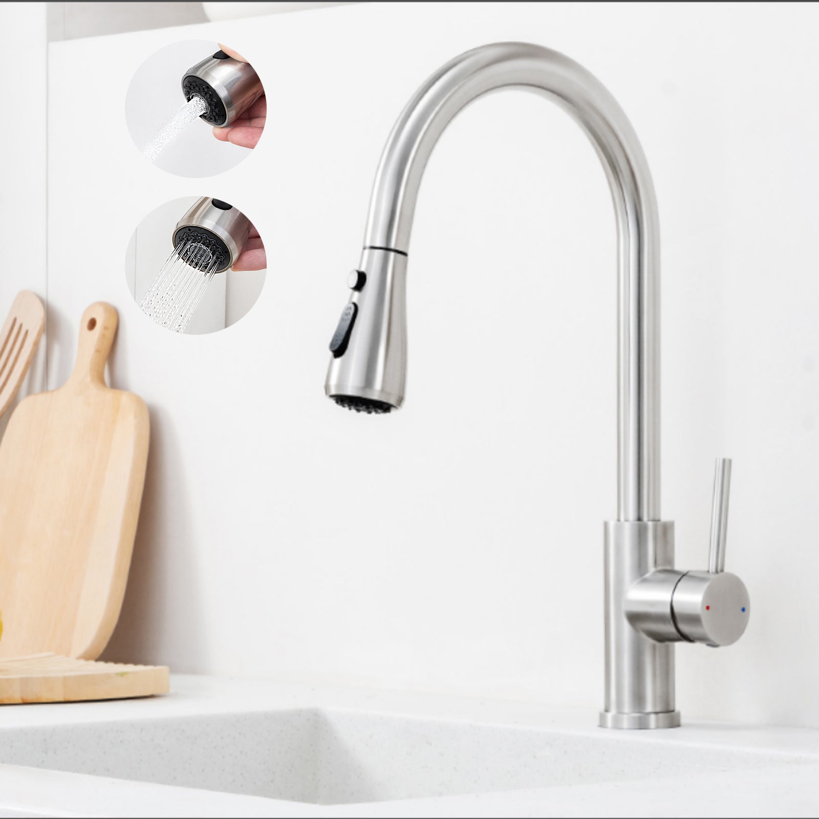 ☞ Tête d'extracteur avec coque en plastique ABS. Ce robinet de cuisine haute pression garantit 2 types de jet et est doté d'une fonction pause. L'eau de Classic Water est douce, résistante aux éclaboussures, facile à nettoyer et permet d'économiser jusqu'à 40 % d'eau. L'eau de la douche peut éliminer efficacement la saleté de la vaisselle.