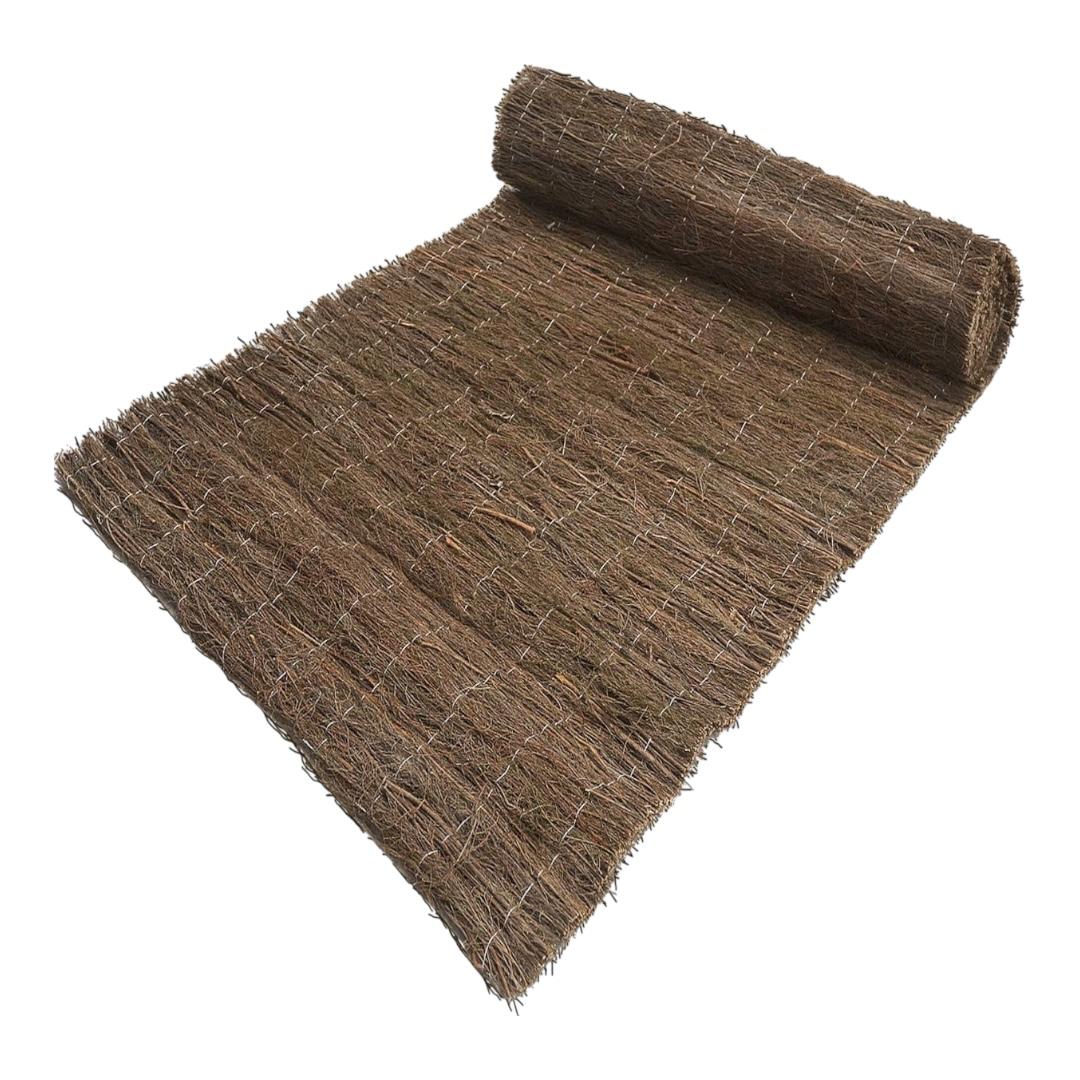 Les rouleaux de bruyère sont fabriqués à partir de branches de bruyère naturelles, un arbuste rustique que l'on trouve couramment dans les régions montagneuses ou au climat atlantique (comme le nord de l'Espagne). Ce type de bruyère est largement utilisé en jardinage, en agriculture et pour la construction de clôtures rustiques. Ses composants et caractéristiques sont détaillés ci-dessous : Dissimulation : 100 % Matériau : Branches de bruyère (Calluna vulgaris ou Erica spp.) : Elles sont récoltées, séchées et groupées pour former le rouleau. Fil galvanisé ou en acier inoxydable : Utilisé pour lier et compacter les branches, formant ainsi une sorte de treillis ou de panneau. Caractéristiques : 100 % naturel. Sa densité élevée lui confère une certaine opacité (idéale pour dissimuler les clôtures ou les terrasses). Résistance aux intempéries et au passage du temps.