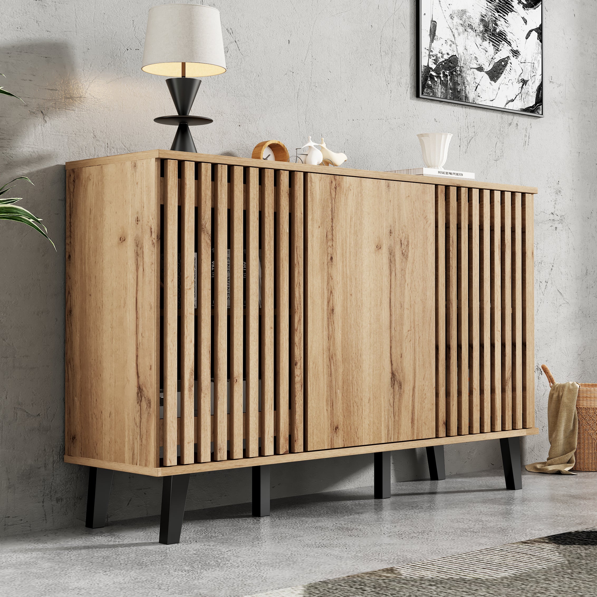 Buffet 150x40x95 cm - 3 portes et 6 compartiments de rangement - Style scandinave - Naturel