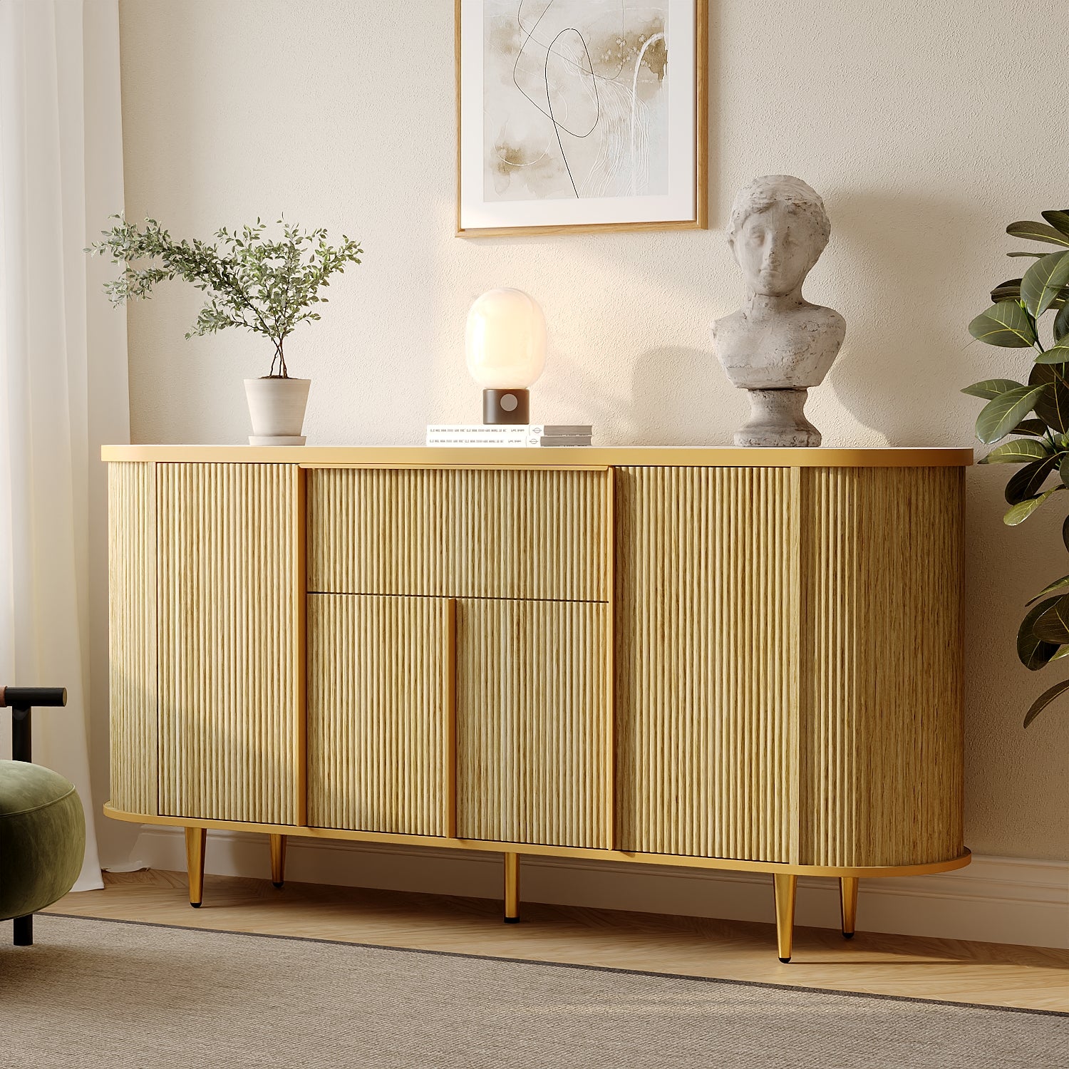 Forme semi-ronde : Les deux côtés du meuble adoptent une élégante forme semi-circulaire, rompant avec la design carré traditionnel des buffets. Vue de profil, sa ligne fluide et gracieuse lui confère un caractère artistique unique et une forte identité.