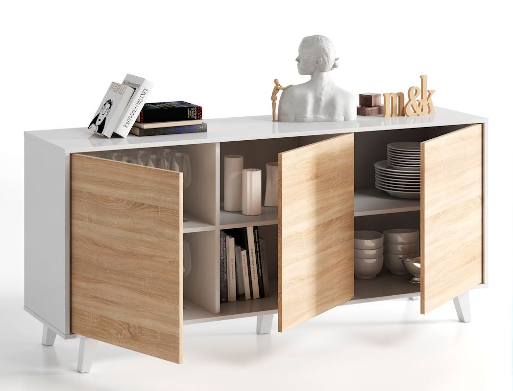 Buffet scandinave ABBY 3 portes L154cm - Blanc / Bois