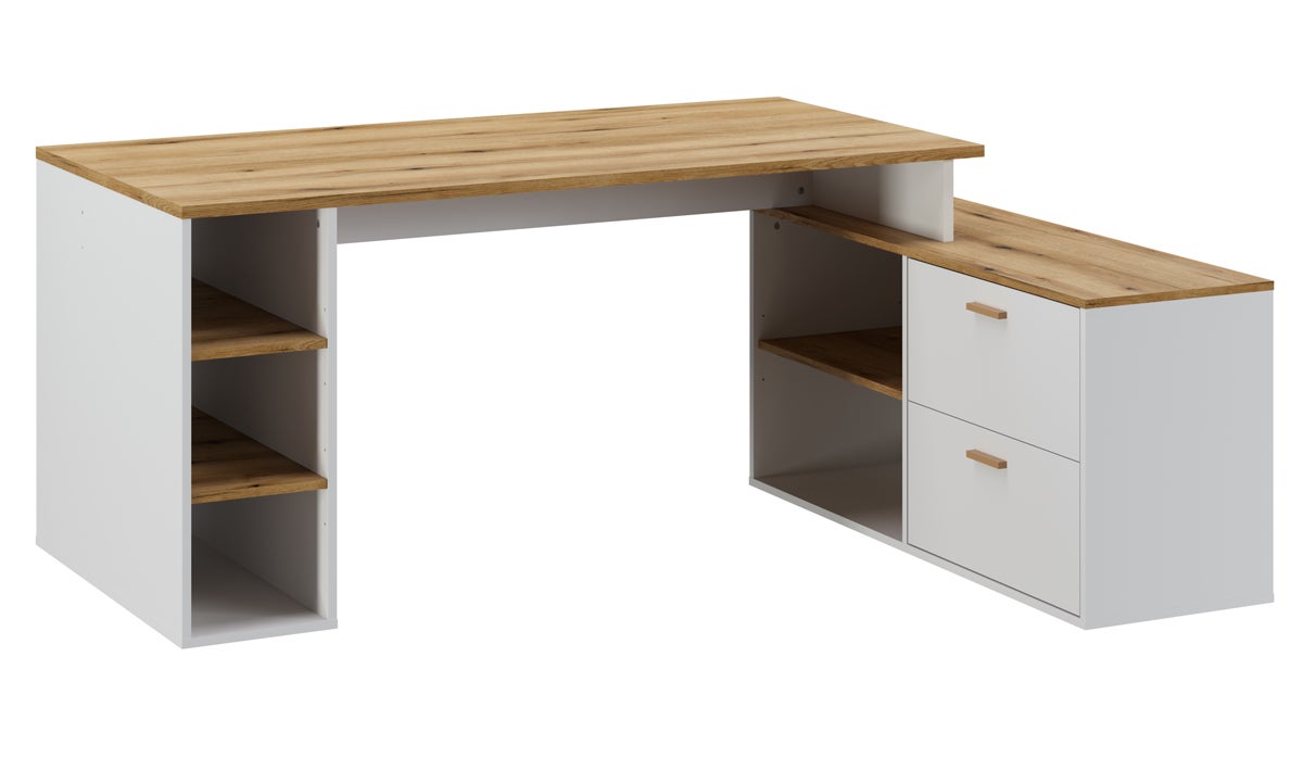 Bureau d'angle en mélamine coloris imitation chêne artisan / blanc - Longueur 183 x profondeur 141 x Hauteur 75 cm