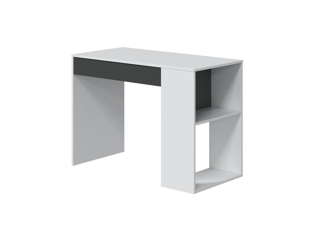 Bureau Moderne Avec Tiroir 101x50x73 Réversible Avec Tablettes Latérales Blanc