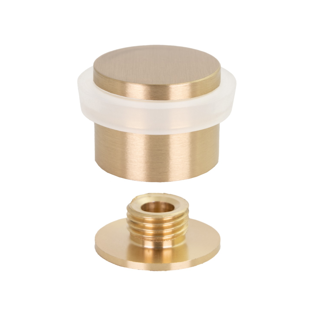 Ce butoir de porte au sol mesure 24 millimètres de diamètre et 20 millimètres de hauteur. Le butoir de porte en laiton massif est conçu avec un caoutchouc silicone protecteur qui protège vos portes et vos murs en absorbant les chocs et en réduisant les bruits d'impact. Sa fabrication avec des matériaux nobles le rend adapté aux lieux humides. Un arrêt de porte décoratif avec une finition satinée mate et un caoutchouc de protection blanc au look classique et élégant. INSTALLEZ VOTRE BUTÉE DE PORTE EVI : 1. marquer l'emplacement et percer le trou. 2. Essuyez tout résidu de matériau à l'aide d'un chiffon humide. 3. Placez la cheville et vissez la base de l'arrêt au sol. 4. Visser le corps de la butée à la base. Pour une INSTALLATION ADHÉSIVE : 1. Nettoyez la surface où vous allez l'installer. 2. Chauffer l'adhésif à l'aide d'un sèche-cheveux pour activer l'adhérence. 3. Retirez le plastique de protection sans toucher l'adhésif. 4. Appuyer sur la base pendant au moins 60 secondes. Après 24 heures, le corps du bouchon peut être vissé. Nous NE RECOMMANDE PAS l'installation de la colle sur des murs bruts ou des murs avec des peintures spéciales.