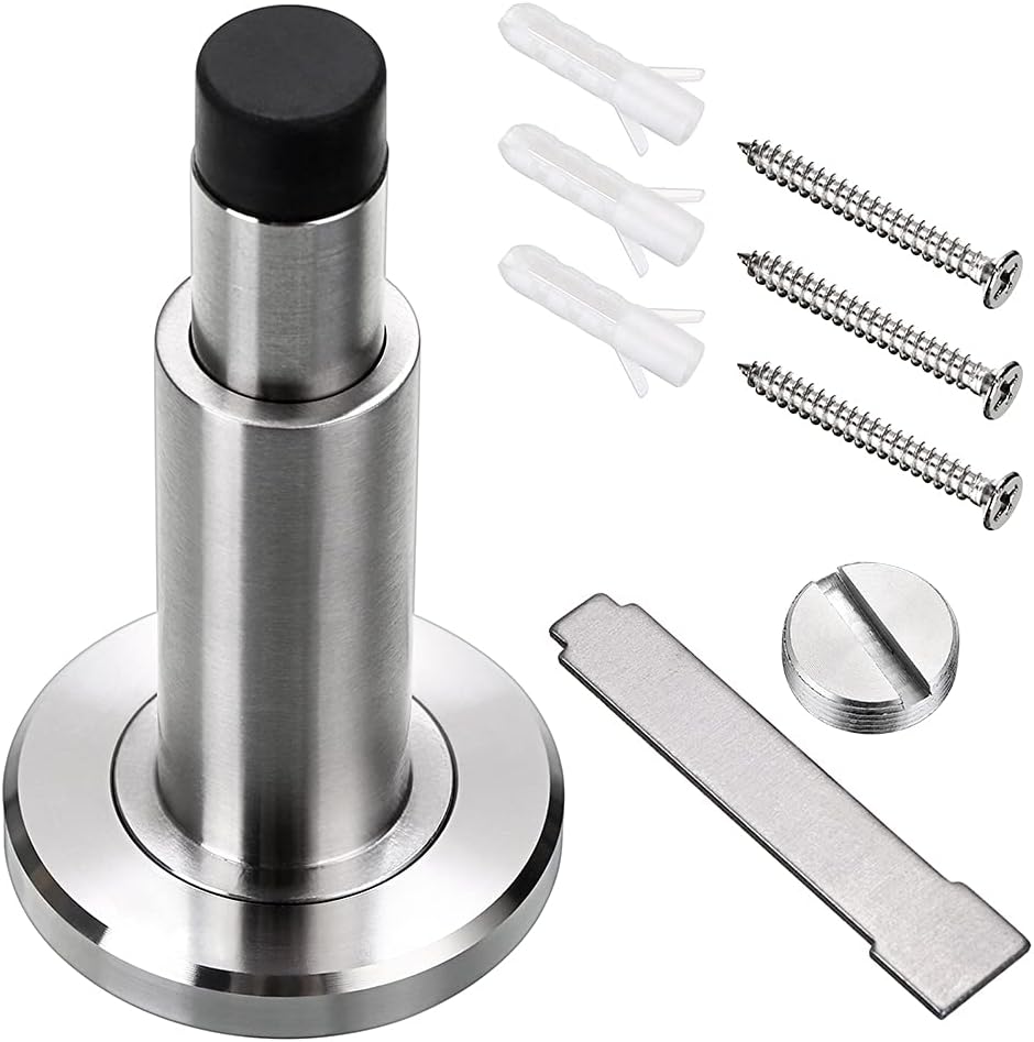 Butée de porte réglable robuste en acier inoxydable finition brossée Fixation murale avec tampon en caoutchouc (1 pièce)
