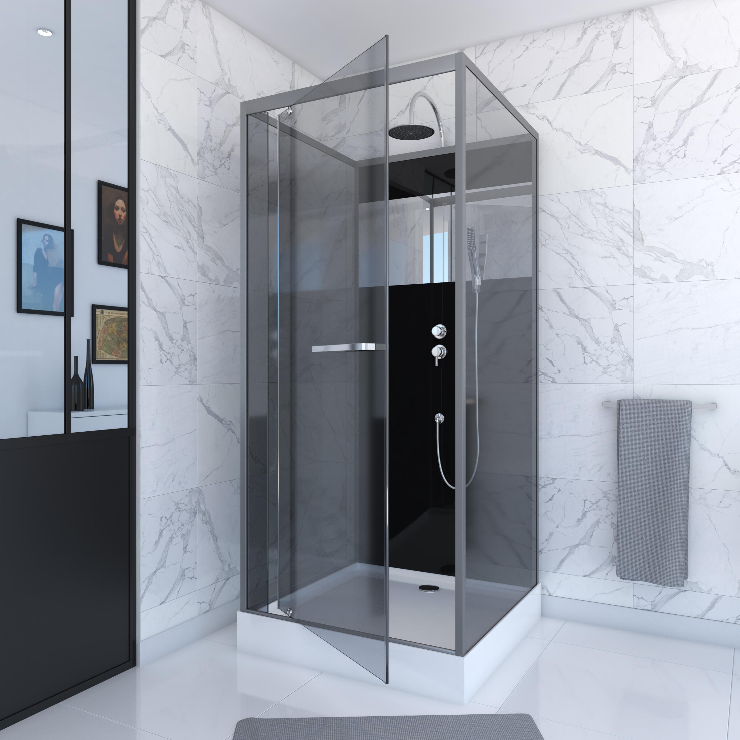 Cabine de douche REFLECT 90X90 ... porte pivotante et receveur ?