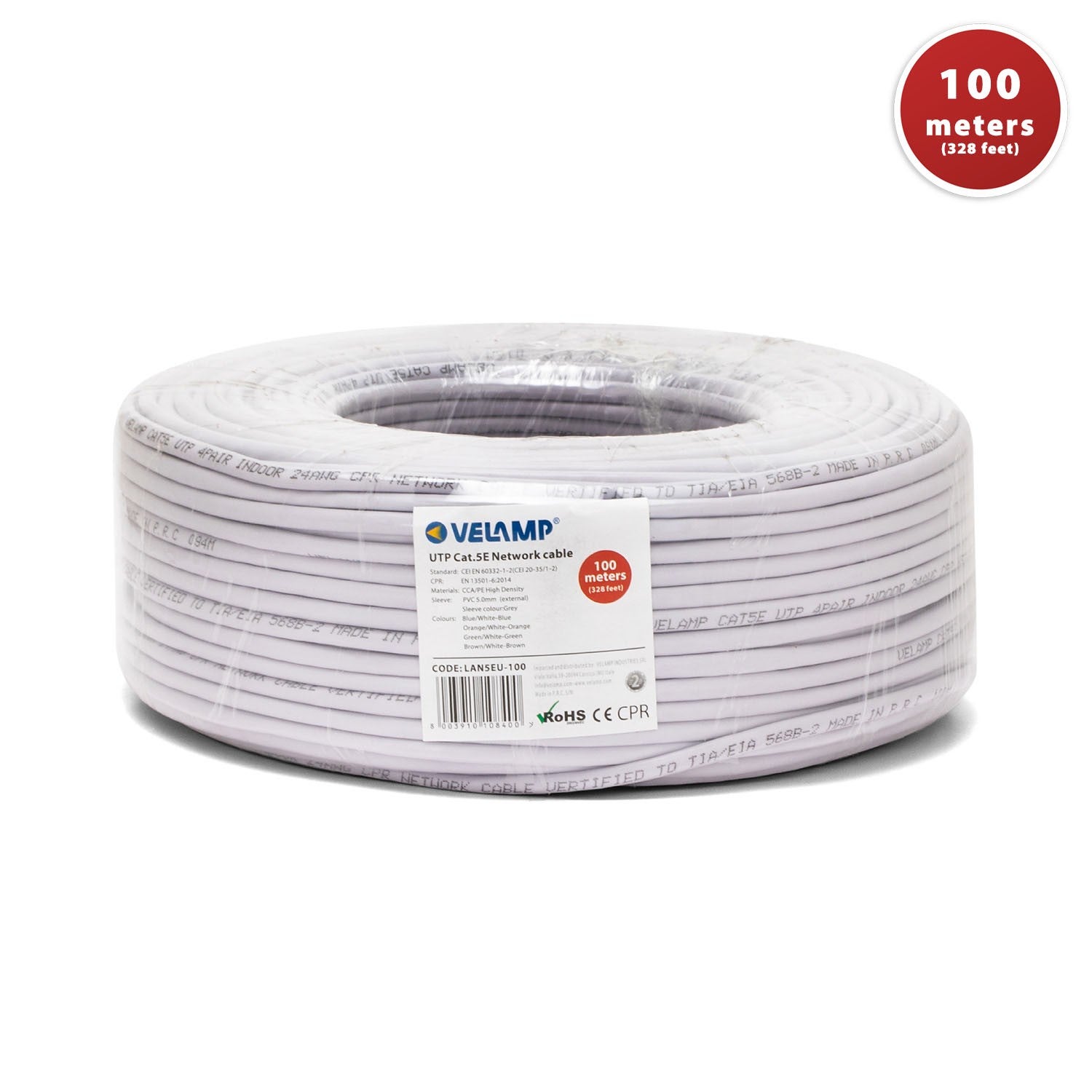 Longueur: 100 mètres | Couleur: gris | Catégorie 5e UTP.FIN ET LÉGER - Avec les fils CCA, les câbles VELAMP sont plus légers que ceux contenant du cuivre massif. Avec des dimensions AWG24 (environ 51 mm de diamètre), nos câbles s adaptent facilement aux endroits exigus. Idéal pour les rainures métalliques car elles laissent beaucoup de place pour la ventilation. 4 paires torsadées: bleu / blanc-bleu; orange / blanc-orange; vert / blanc-vert; brun / blanc-brun.SANS INTERFÉRENCE - Les câbles à paires torsadées non blindées (UTP) sont couramment utilisés pour leurs propriétés de suppression du bruit. Le câble Ethernet VELAMP minimise les interférences qui affectent négativement la qualité du signal. Sans mise à la terre, il est facile d installer nos câbles pour une utilisation à la maison ou au bureau.TRANSMISSION DE DONNÉES HAUTE VITESSE - Câble adapté aux réseaux câblés à la maison et au bureau pour une connexion Internet via un modem, un routeur, un commutateur, un appareil Wi-Fi, un amplificateur de signal ou un commutateur. Notre câble offre des connexions stables sur tous vos appareils tels que l ordinateur, la caméra de sécurité, l ordinateur, le PC, la console de jeu ou toute connexion au sein d un LAN.AJOUTER DES CONNECTEURS UNIQUEMENT - En installant des connecteurs RJ45 aux deux extrémités, le câble VELAMP connectera universellement votre ordinateur, ordinateur portable, serveur à un routeur ou à un réseau local câblé (LAN). Tout appareil électronique peut utiliser ce câble, à condition qu il dispose d un port RJ45. Cela inclut Xbox, PS4, HDTV, commutateurs, imprimantes.