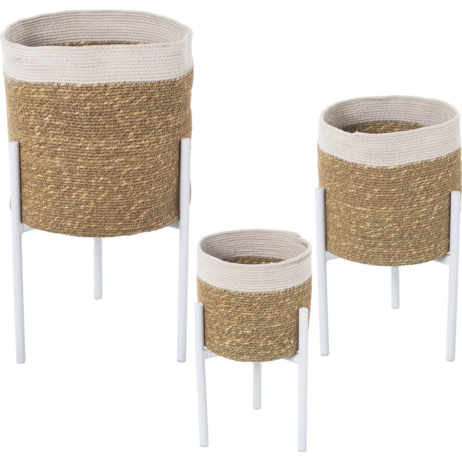 Cache-pot métal tissé élégance intemporelle 30 x 30 x 47 cm Marron naturel tissé avec bordure blanche