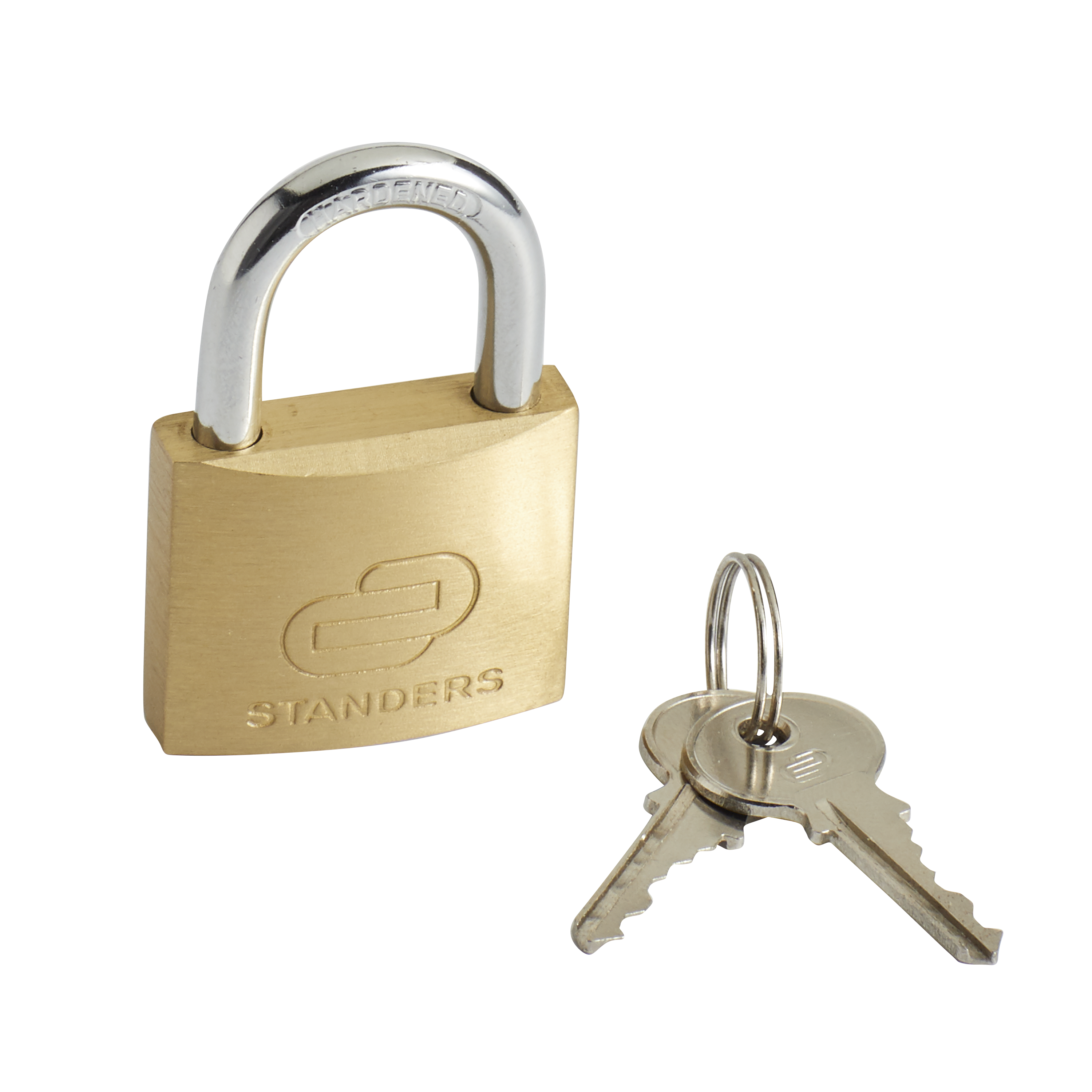Cadenas Standers avec double clé autobloquante. Comprend 2 clés pour en avoir une de rechange. Il est composé d'un manche en acier chromé de 6,3 mm et d'un corps en laiton doré. Mesures du corps : 40 x 33 mm (largeur x hauteur).