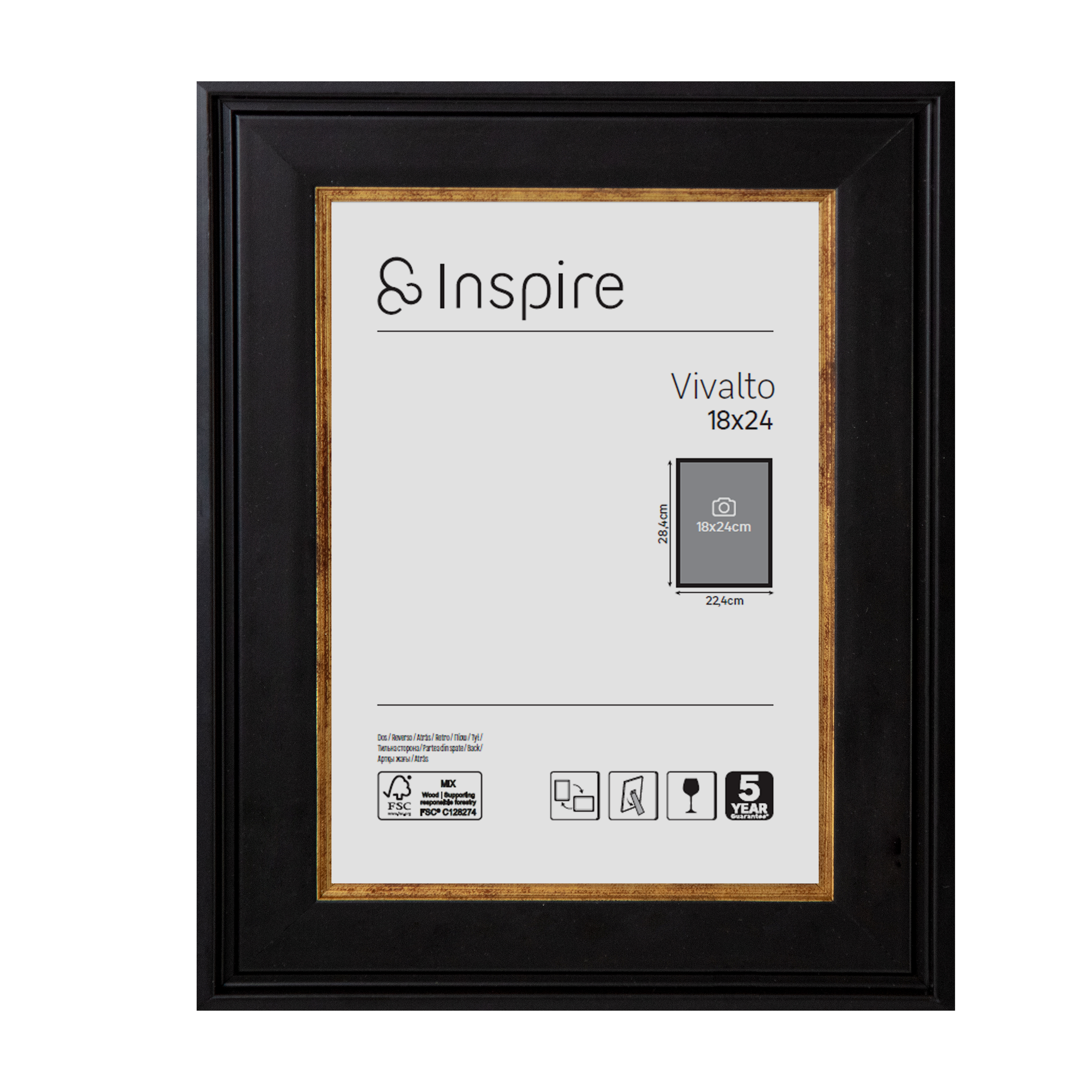En savoir plusLe cadre VIVALTO Inspire est idéal pour encadrer facilement une photo ou une image, et parfaire votre décoration. Remarquable par son contour aux moulures noires et au liseret doré, il ajoute une touche chic à votre intérieur. Idéal pour une photo de 18x24 cm. Grâce à ses fixations horizontales et verticales, vous pouvez l'adapter à la configuration de votre pièce, ainsi que le poser sur un meuble à l'aide de la cravate. Disponible en plusieurs tailles, associez-les et créez un assemblage unique ! Le bois utilisé pour fabriquer le dos de ce cadre est issu de forêts gérées durablement et il est composé de matériaux certifiés FSC (FSC-N003930).