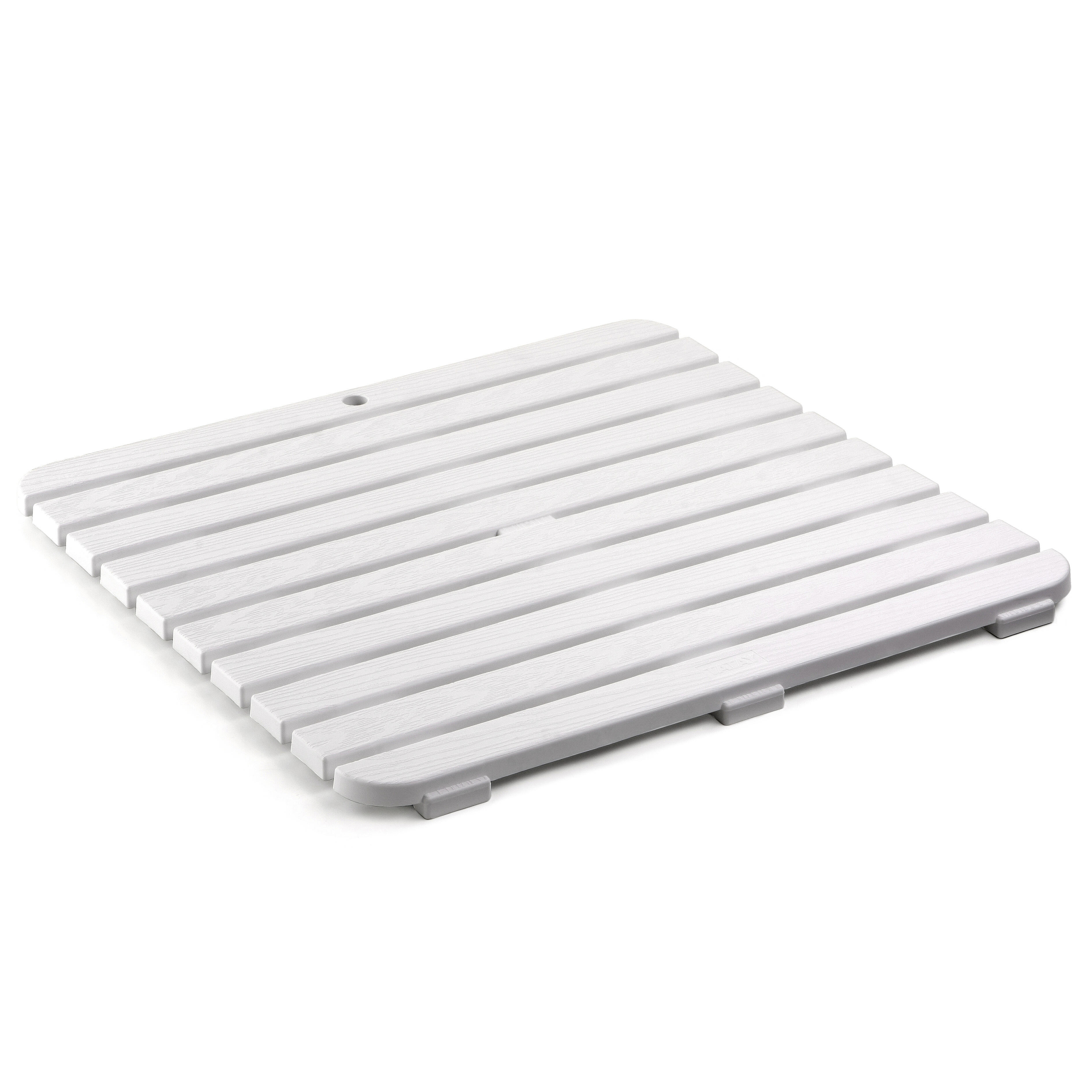 Bonjour je recherche un caillebotis de couleur blanc.pour mettre dans le bac à douche de mon camping-car. Il faut qu il soir decoupable et ajustable car le bac à une forme particulière . La Sima soon minimum est de 35 cm X 560.
