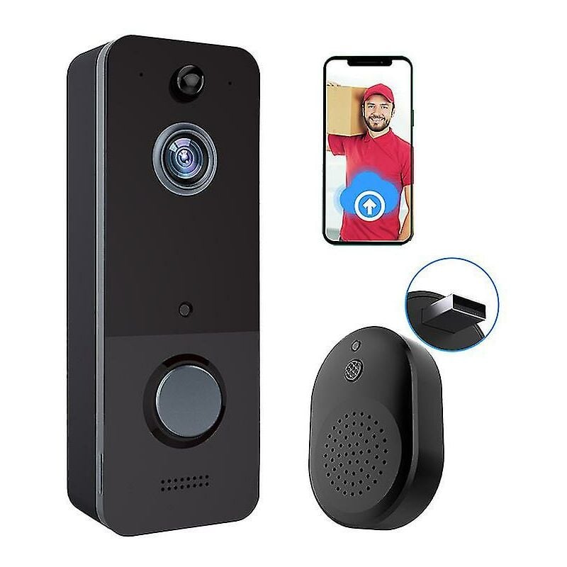 Caméra de sonnette sans fil, avec détection de mouvement, stockage en nuage, image HD en direct, vision nocturne, compatible Wi-Fi 2,4 g