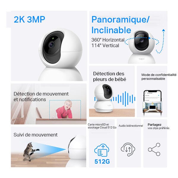 Caméra de sécurité Panoramique/inclinable WiFi
