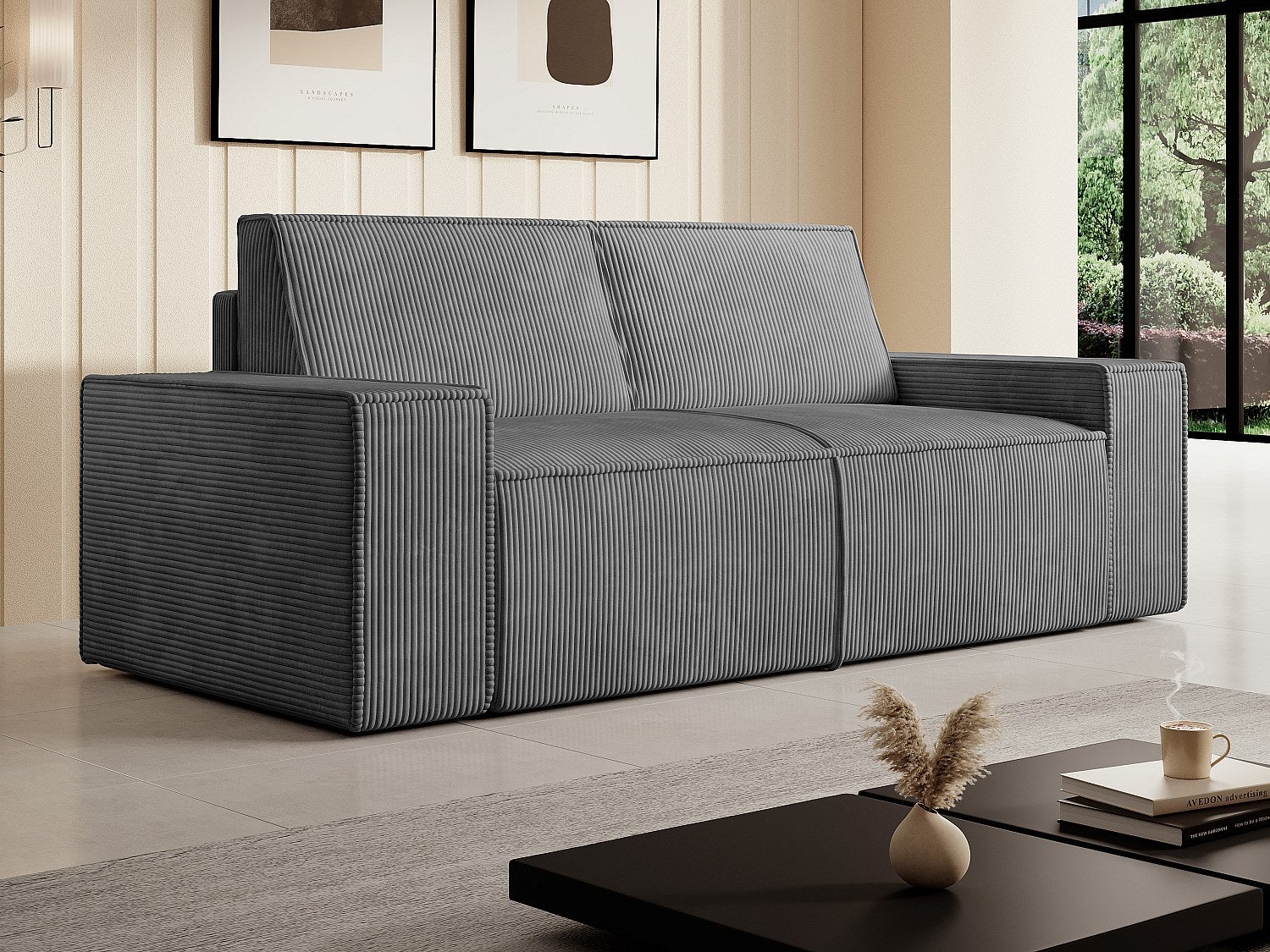 Canapé 3 places en velours côtelé gris anthracite AMELIA