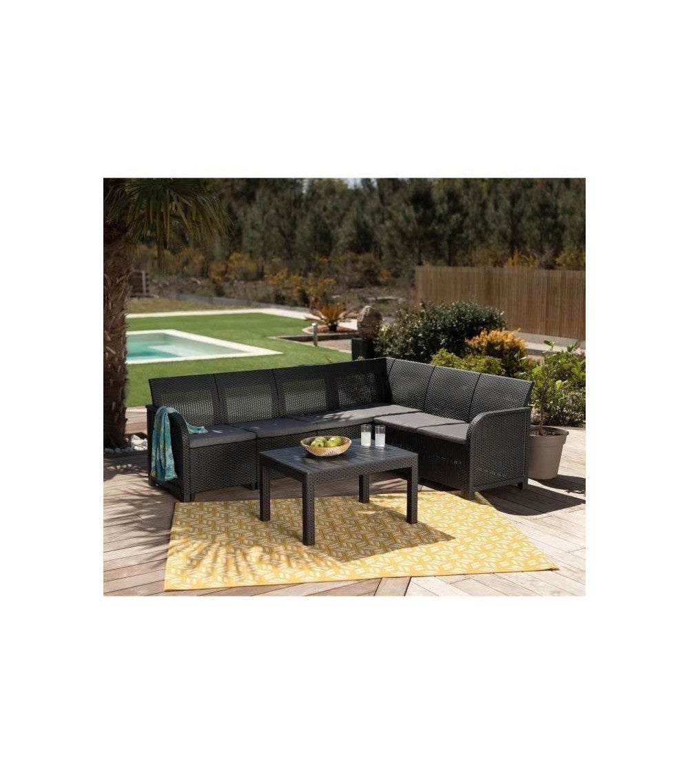 Canapé d'angle ALLIBERT by KETER - 6 personnes - Imitation rotin tressé avec table basse - Gris graphite - SanRemo
