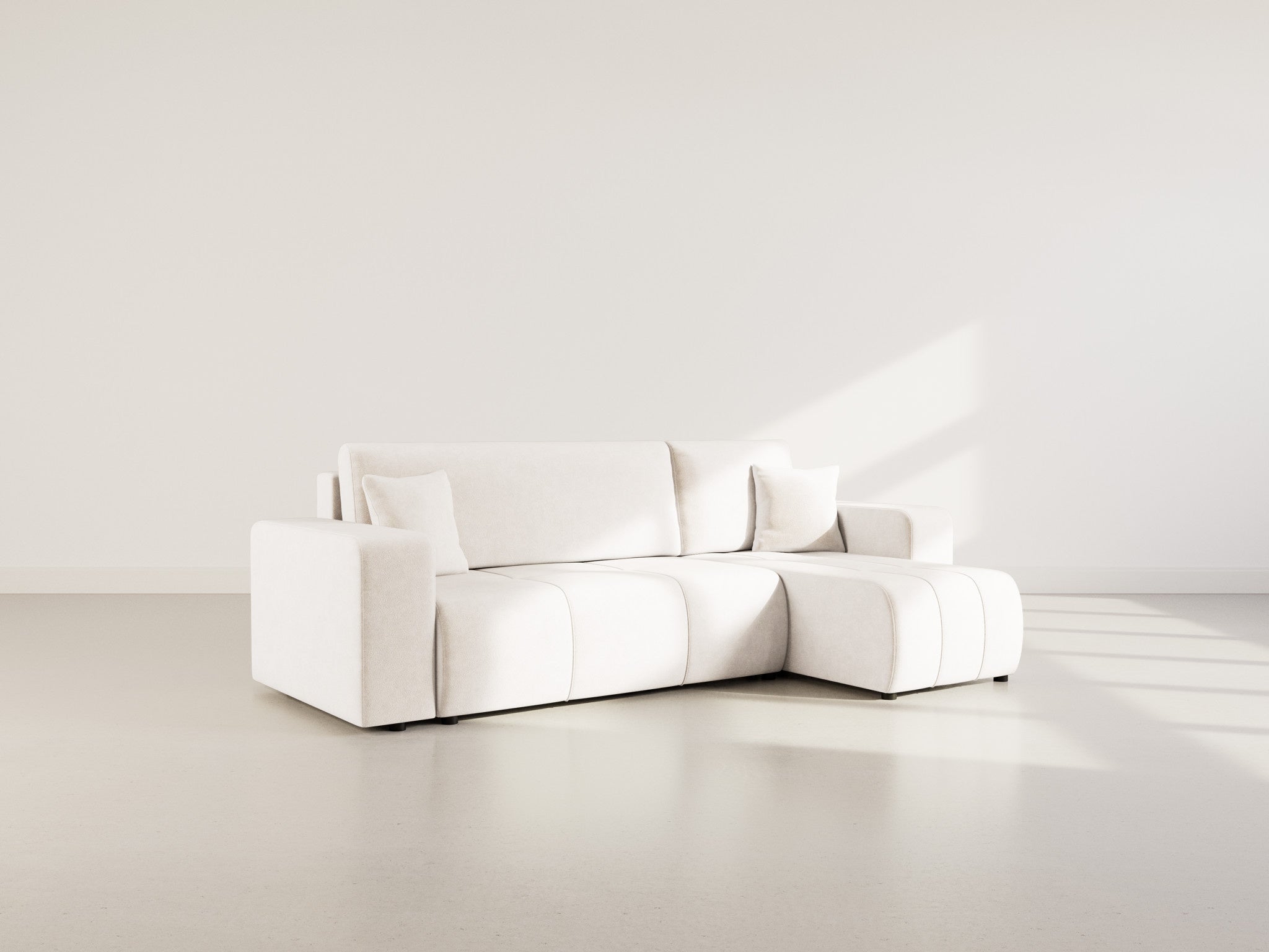 Le canapé d'angle réversible Nicole est le choix idéal pour ceux qui recherchent un meuble élégant, fonctionnel et adaptable à leur espace. Conçu pour offrir un confort optimal, il se transforme facilement en un couchage d'appoint de 200x125cm, parfait pour accueillir vos invités en toute sérénité. De plus, son coffre de rangement intégré de 128x61x22cm permet d'optimiser l’espace, offrant un lieu discret pour stocker vos couvertures, oreillers ou autres accessoires du quotidien. Ce canapé a été pensé pour s'adapter à votre intérieur : vous pouvez en effet choisir l'angle qui convient le mieux à l'agencement de votre salon, vous garantissant ainsi une harmonie parfaite avec votre décoration.