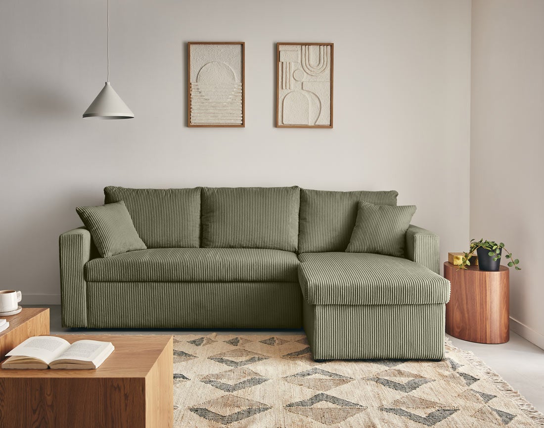 Canapé d'angle convertible 4 places en velours côtelé vert - CYRUS - Best Mobilier