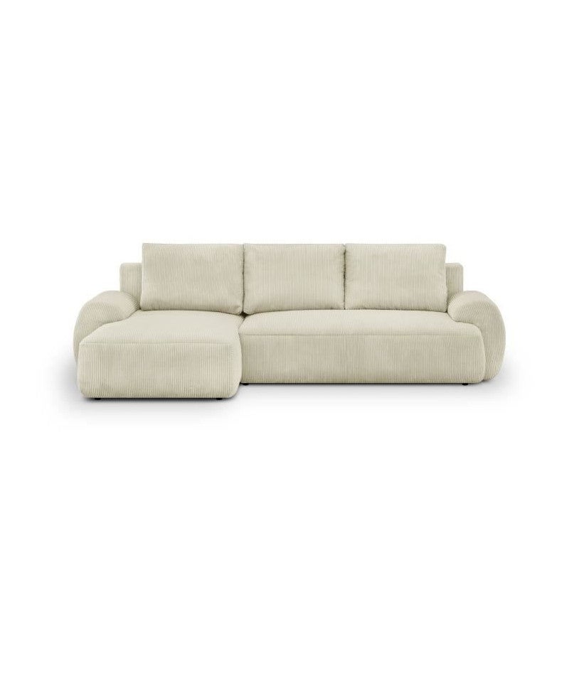 Canapé d'angle gauche convertible 3 places MILO - Velours côtelés beige - Coffre de rangement - L 264 x H 84 x P 99/145 cm