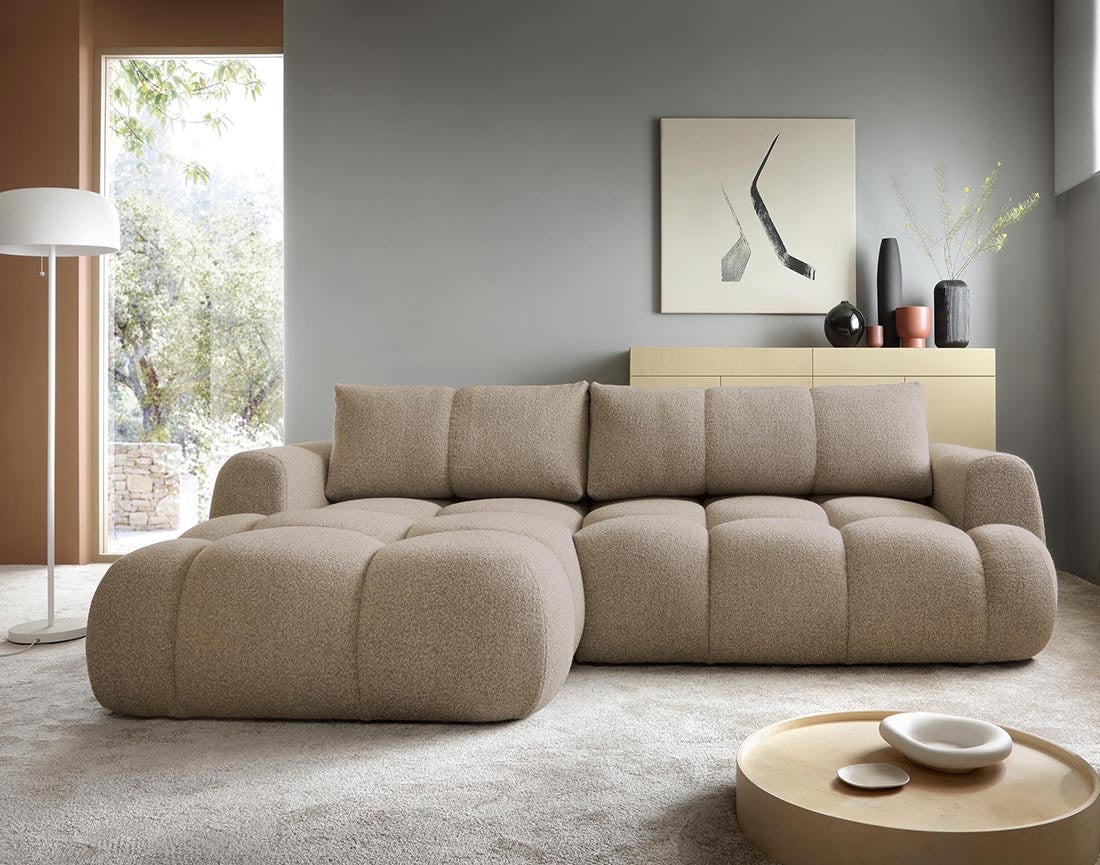 Laissez-vous séduire par le Yulin, un canapé d’angle gauche pensé pour conjuguer style et bien-être. Son design aux courbes arrondies lui confère une allure douce et accueillante, parfaite pour créer une ambiance cocooning. Son tissu bouclette ultra moelleux invite à la détente dès le premier contact, tandis que sa large méridienne vous permet de vous allonger et de profiter d’un confort absolu. Un véritable havre de paix qui deviendra la pièce maîtresse de votre salon.