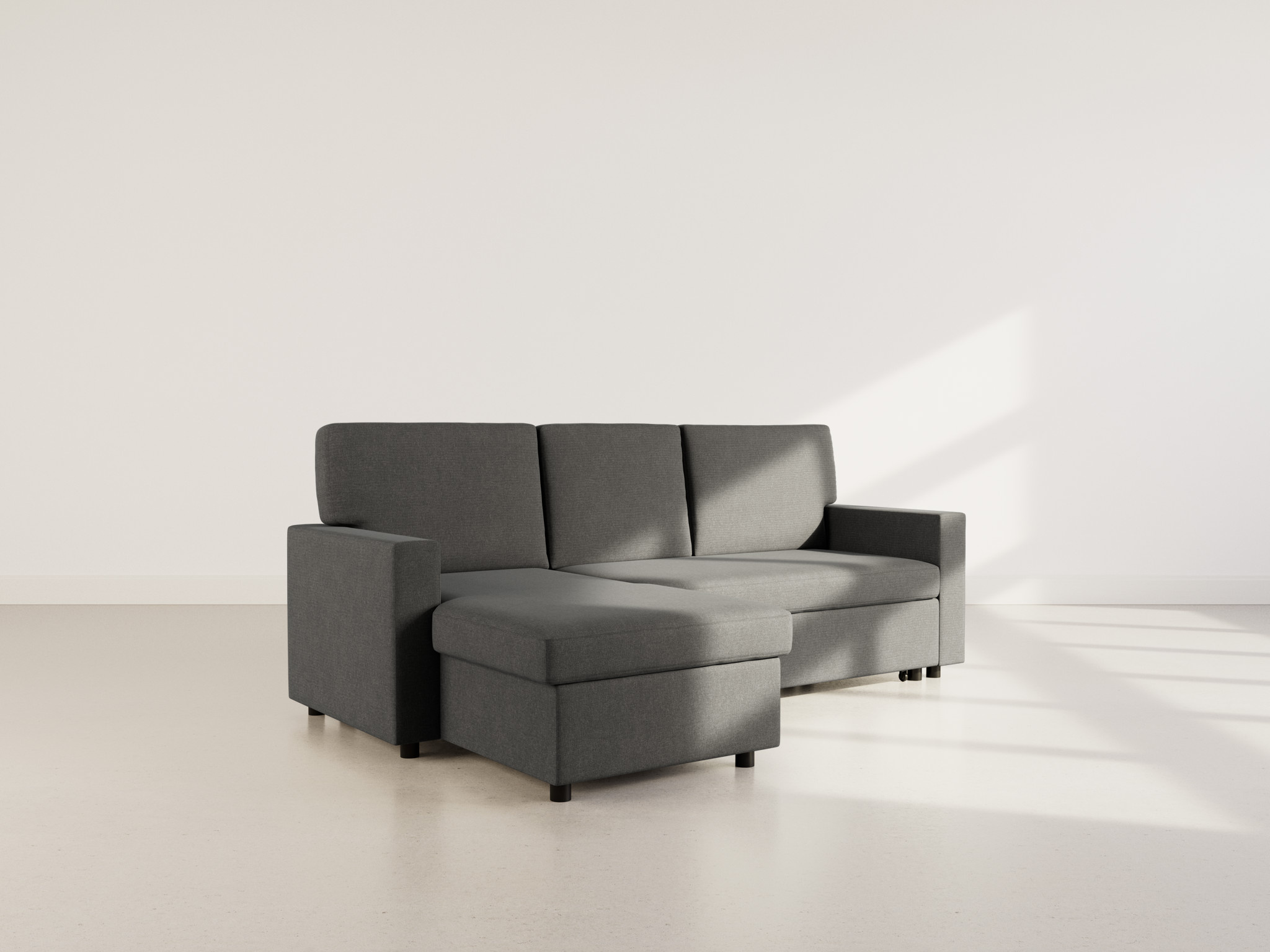 Le canapé d'angle Meiya se distingue par ses nombreux atouts. Son assise et son dossier, soigneusement rembourrés, garantissent une expérience de détente inégalée. Grâce à son angle réversible, vous pouvez facilement ajuster l’orientation du canapé en fonction de vos besoins, en le plaçant à gauche ou à droite. Le modèle Meiya est aussi convertible, offrant ainsi une solution pratique pour recevoir vos invités. En un instant, transformez-le en un couchage d'appoint de 186x148cm, grâce à son tiroir. De plus, son coffre de rangement de 127x58cm intégré est parfait pour organiser vos coussins, plaids et autres accessoires, maximisant ainsi l’espace de votre salon.