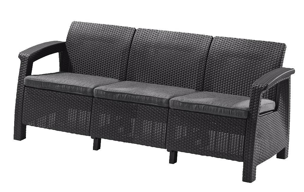 Transformez votre espace extérieur avec le canapé Corfu 3 places en résine. Conçu pour accueillir confortablement trois adultes, ce canapé ergonomique allie légèreté et robustesse. Sa texture élégante imitant le rotin s'harmonise parfaitement avec tout type de patio, jardin, véranda ou terrasse, ajoutant une touche sophistiquée à votre décor extérieur.